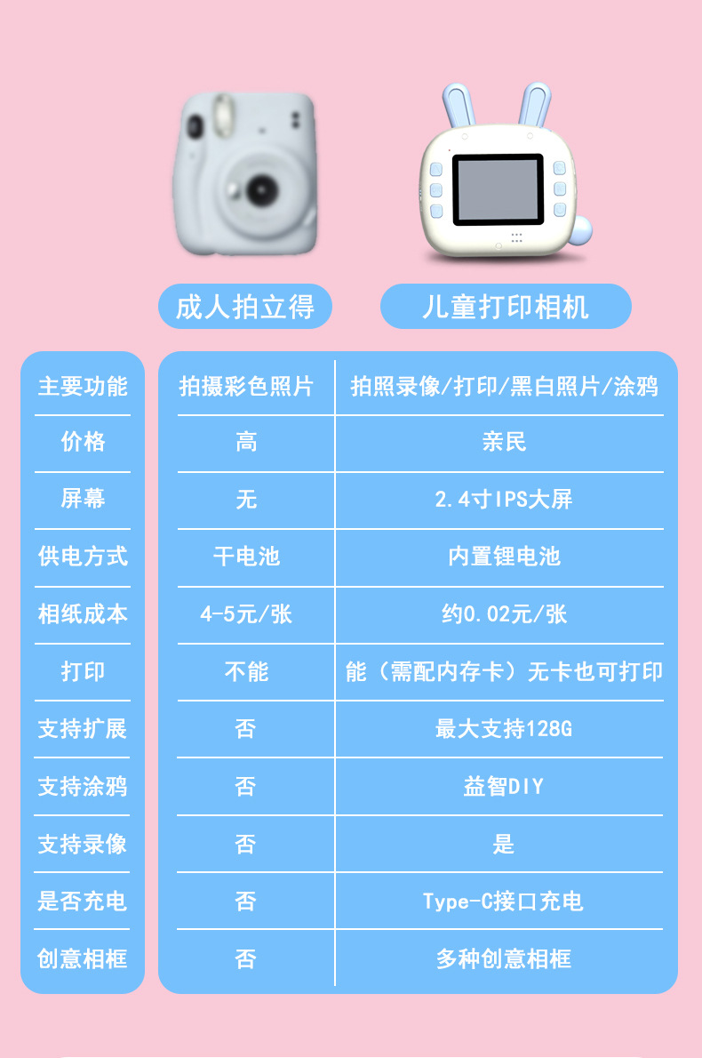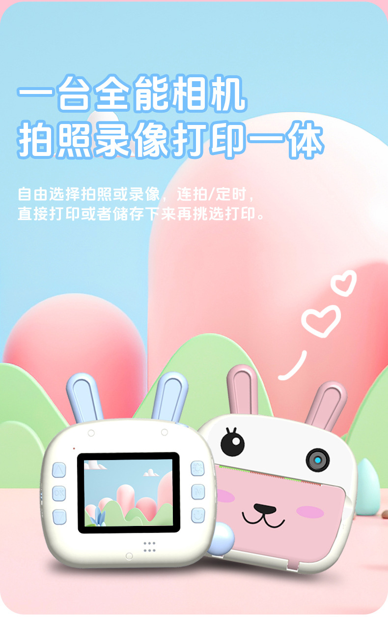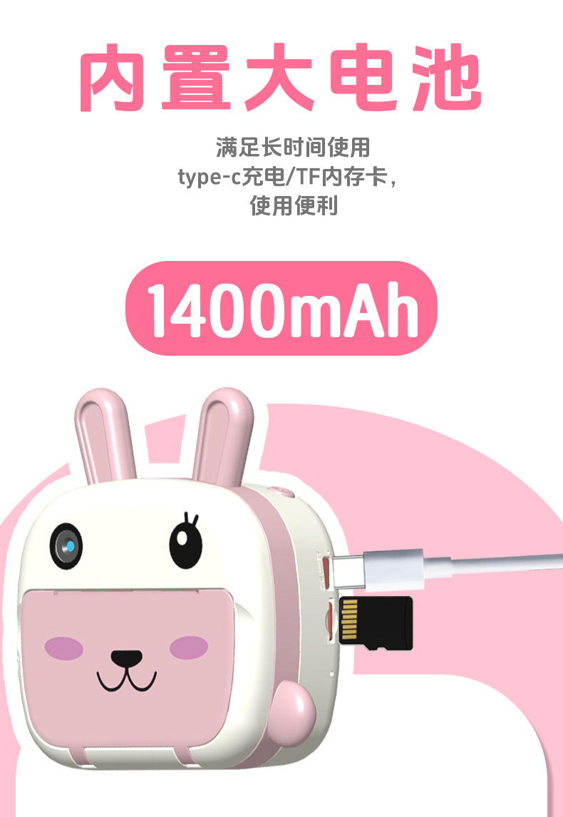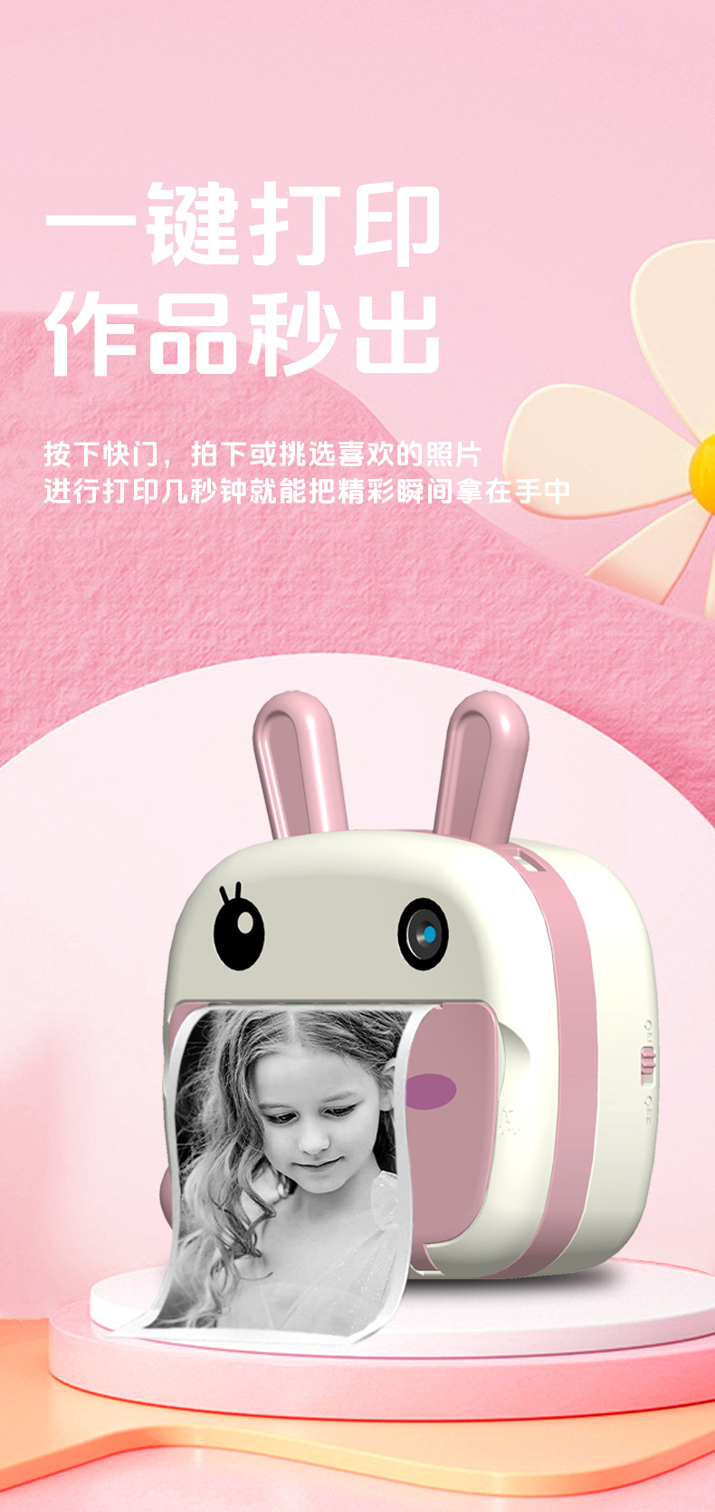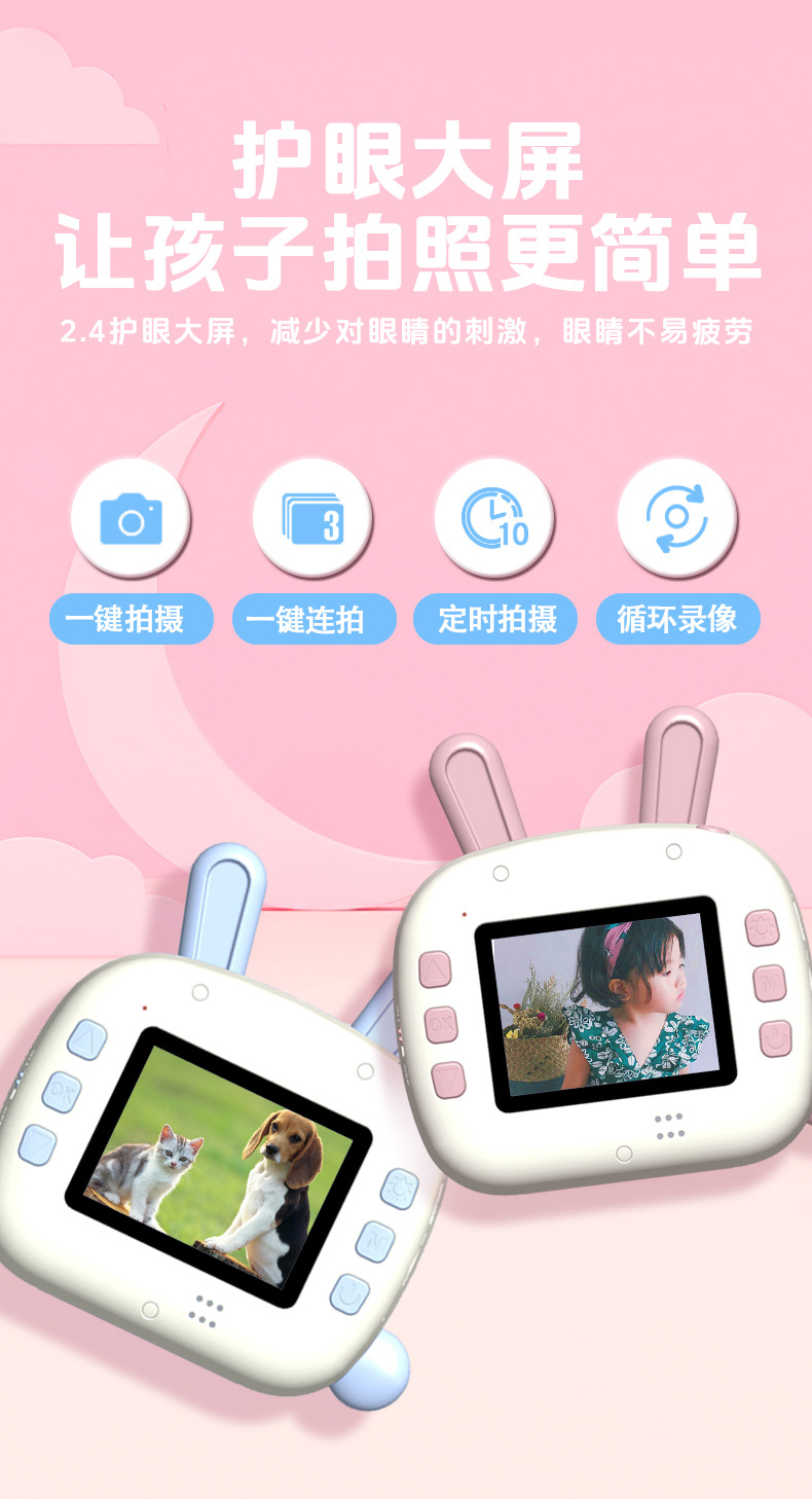 어린이 즉석 카메라 소형 SLR 사진 및 비디오 토끼 카메라 즉석 인쇄 카메라 만화 스타일