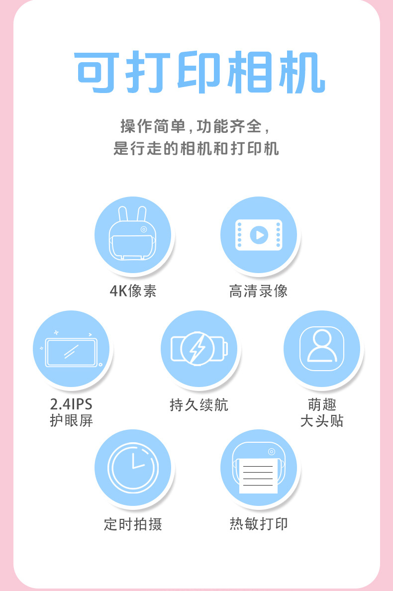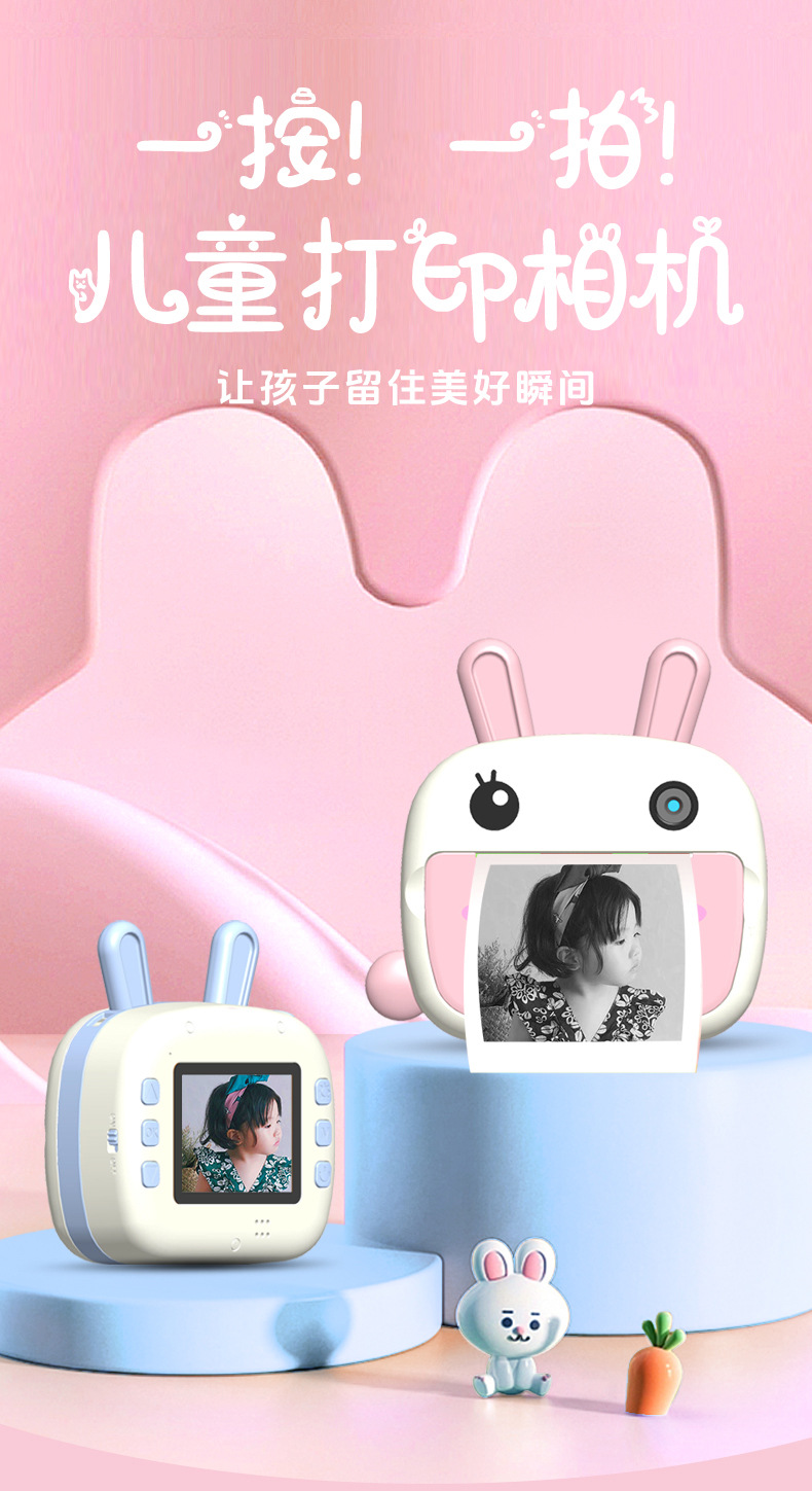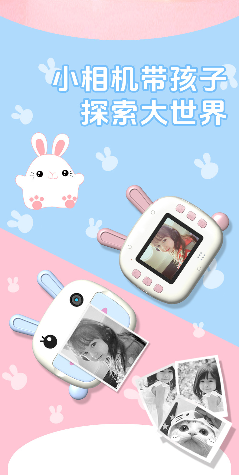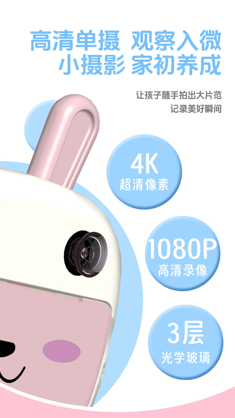 어린이 즉석 카메라 소형 SLR 사진 및 비디오 토끼 카메라 즉석 인쇄 카메라 만화 스타일스토어 가기