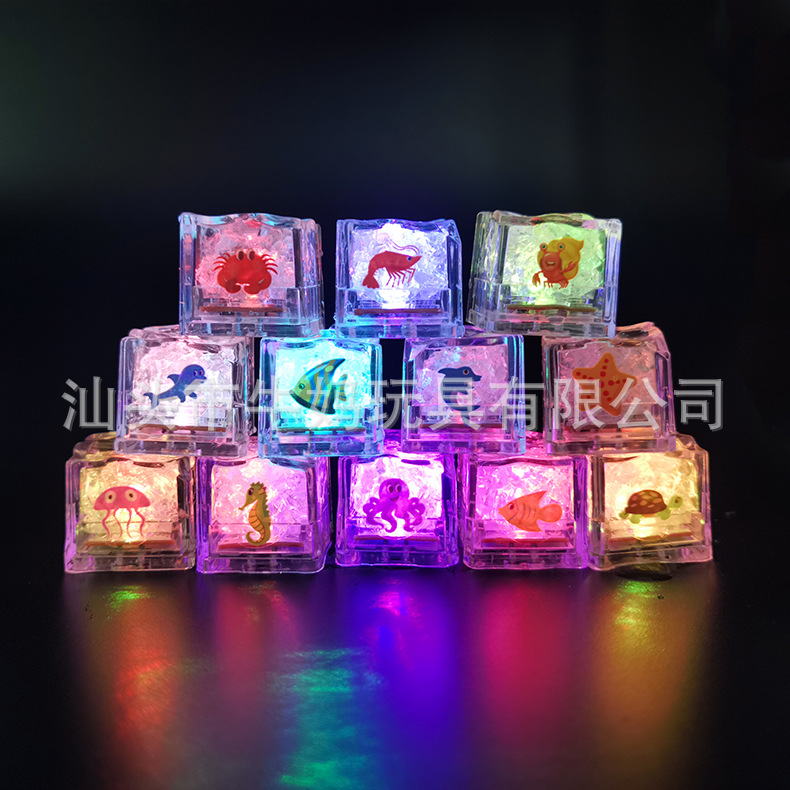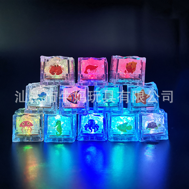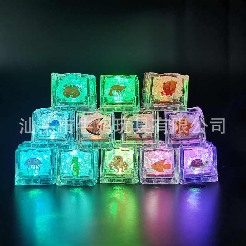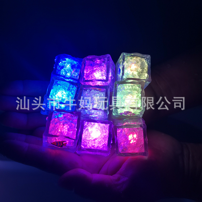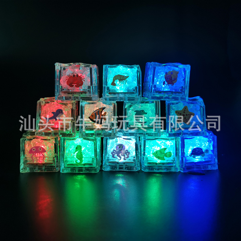 新款跨境浴室洗澡发光冰块七彩触摸感应玩具遇水即亮慢闪灯光冰块