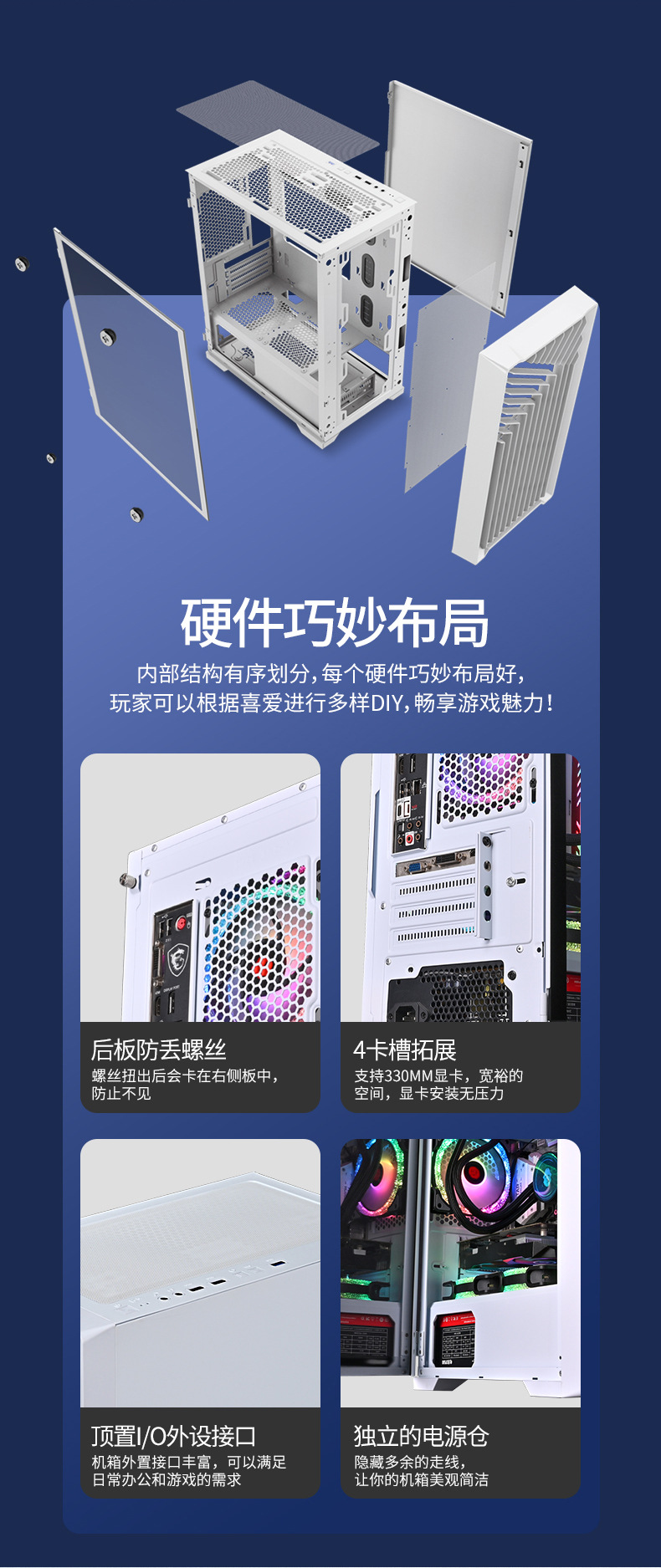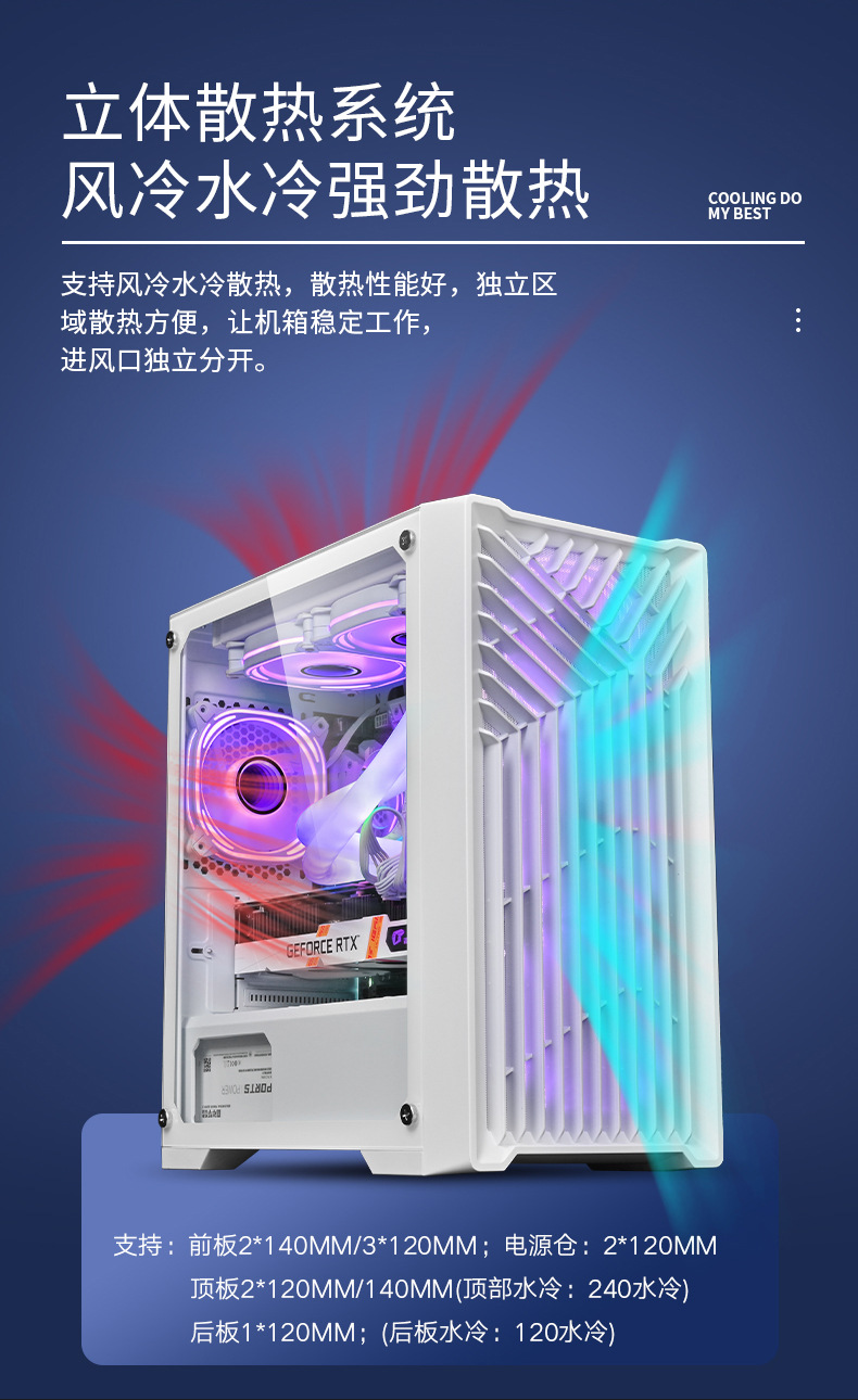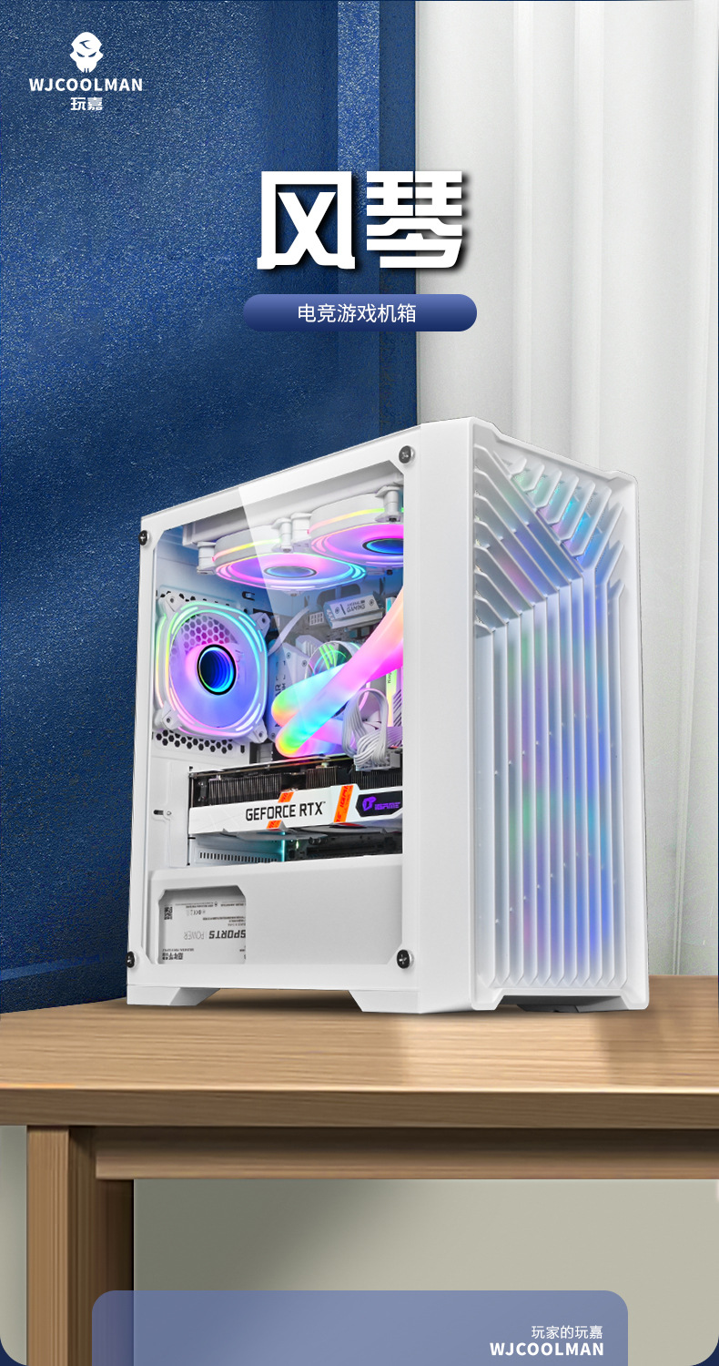 风琴 4卡槽扩展透明机柜机箱全景钢化玻璃电竞游戏机箱