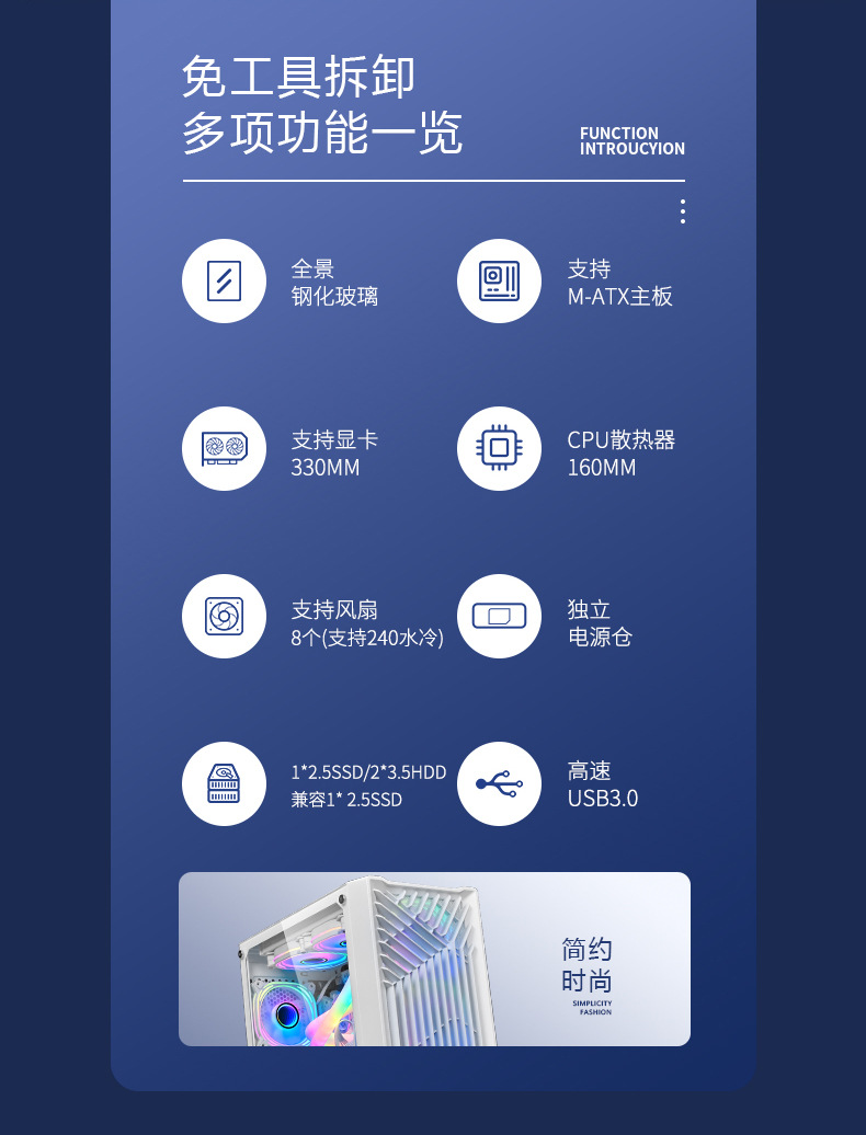 국경 간 데스크톱 컴퓨터 M-ATX 게임 섀시 240 수냉식 인터넷 카페 인터넷 카페 전자 경쟁 섀시 지원