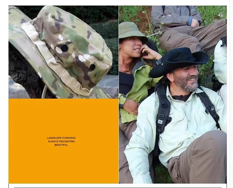공장 직접 공급 베니 모자 위장 둥근 테두리 모자 야외 등산 낚시 모자 태양 보호 태양 보호 모자 군사 팬