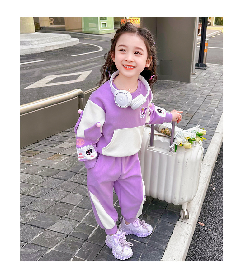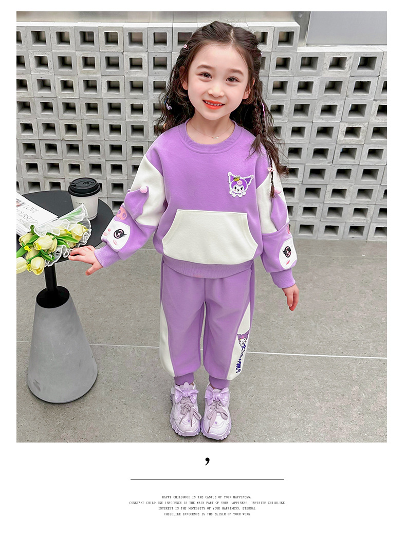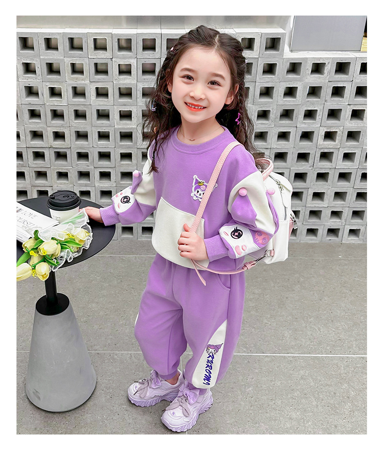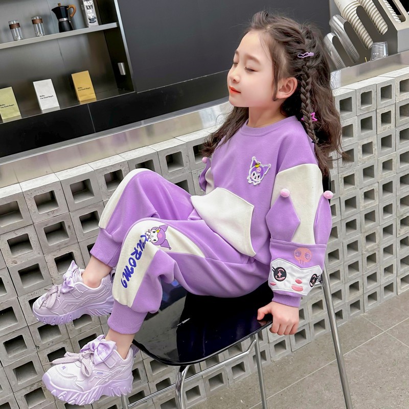 소녀 봄 스포츠 세트 2024 새로운 어린 소녀 만화 쿨로 미 캐주얼 투피스 세트 아기 소녀 봄과 가을스토어 가기