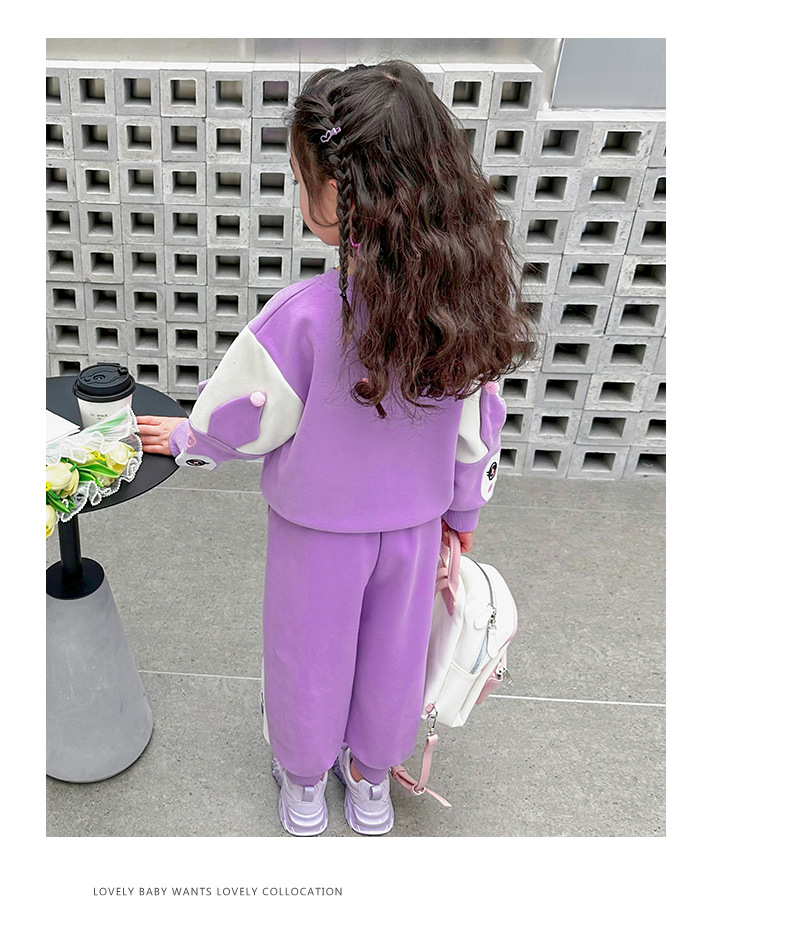 소녀 봄 스포츠 세트 2024 새로운 어린 소녀 만화 쿨로 미 캐주얼 투피스 세트 아기 소녀 봄과 가을