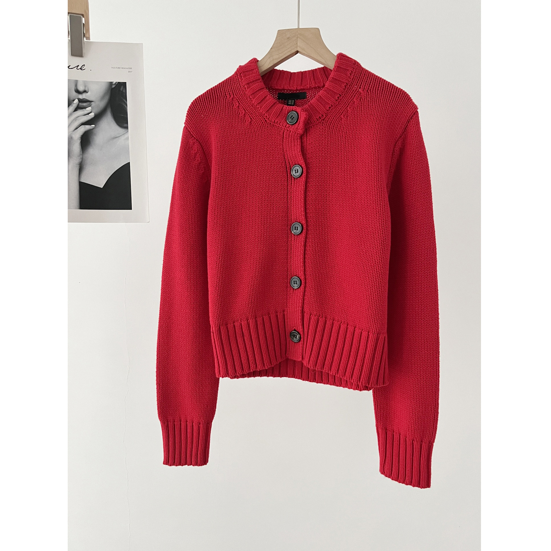 레트로 레드 니트 카디건 여성 md 스타일 봄과 가을 새로운 라운드 넥 울 블렌드 탑 코트스토어 가기
