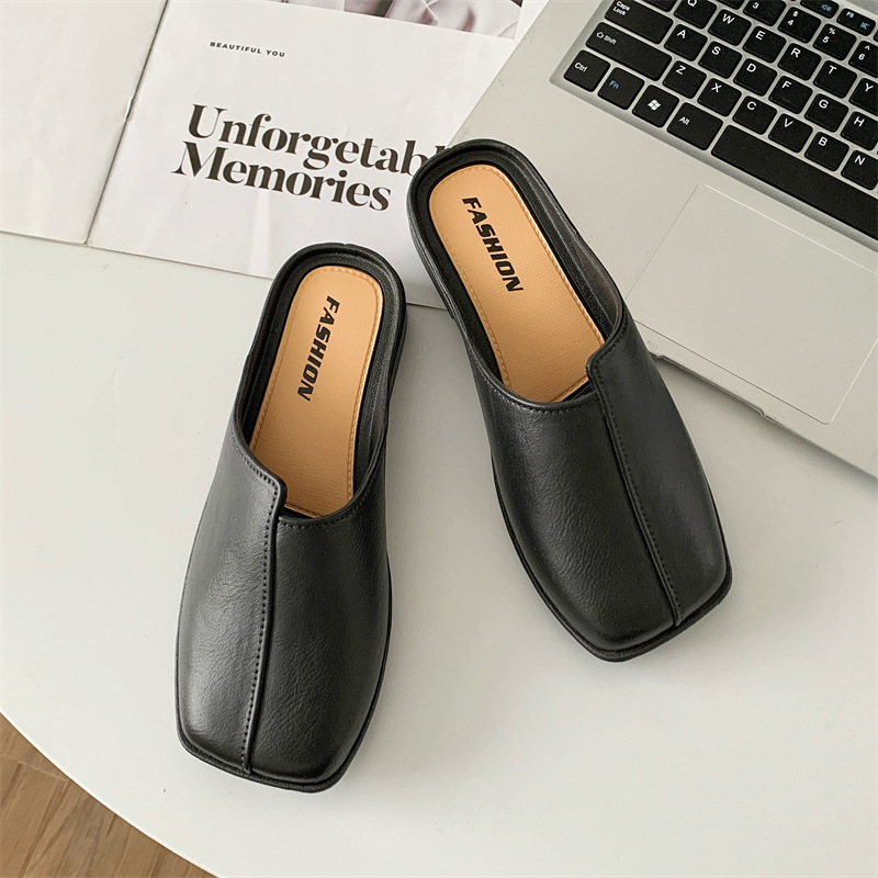 헬리 상어 여름 새로운 닫힌 발가락 슬리퍼 야외 착용 패션 단색 매일 캐주얼 로우 힐 야외 하프 슬리퍼
