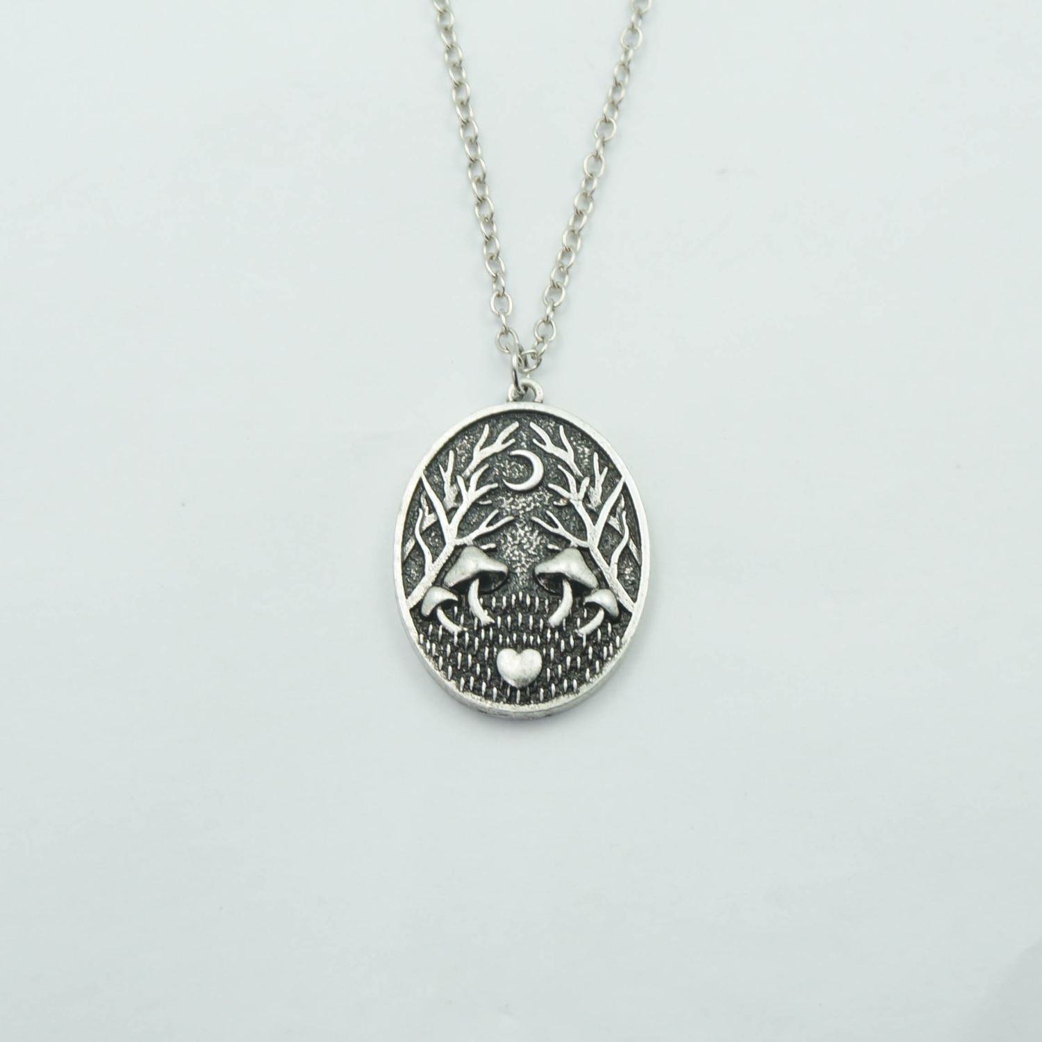빈티지 소나무, 달과 버섯 목걸이-여성을위한 자연 영감 펜던트스토어 가기