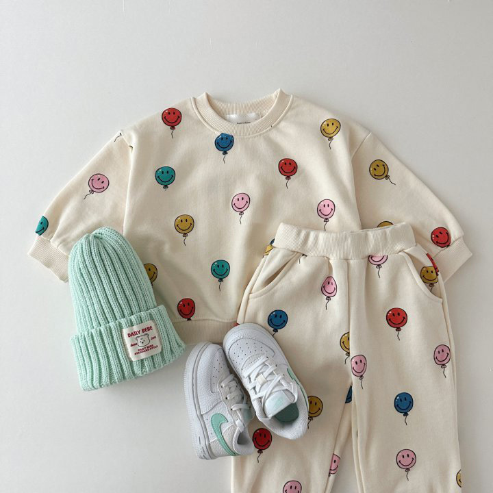 Ins ~ 2024 봄 새로운 소년과 소녀 한국 스타일 세트 중소 어린이 웃는 얼굴 다채로운 풍선 스웨터 투피스 세트스토어 가기