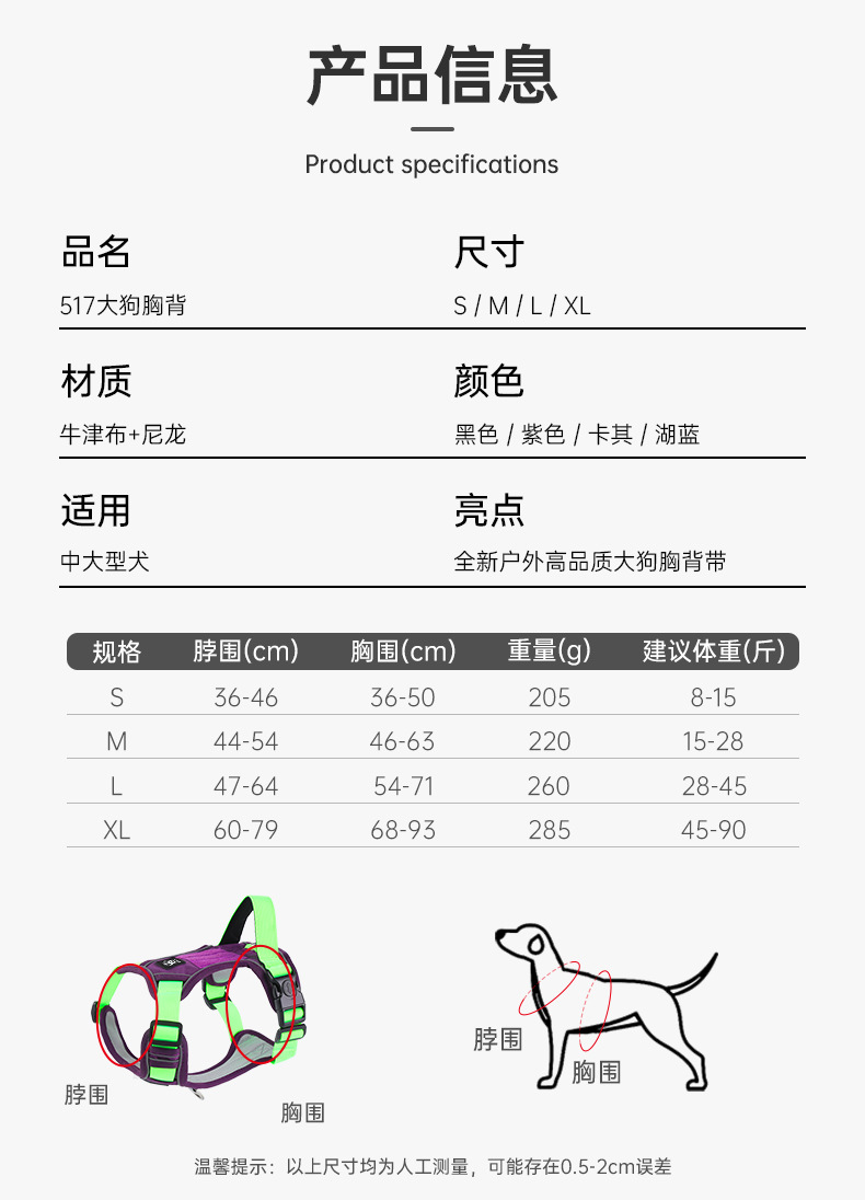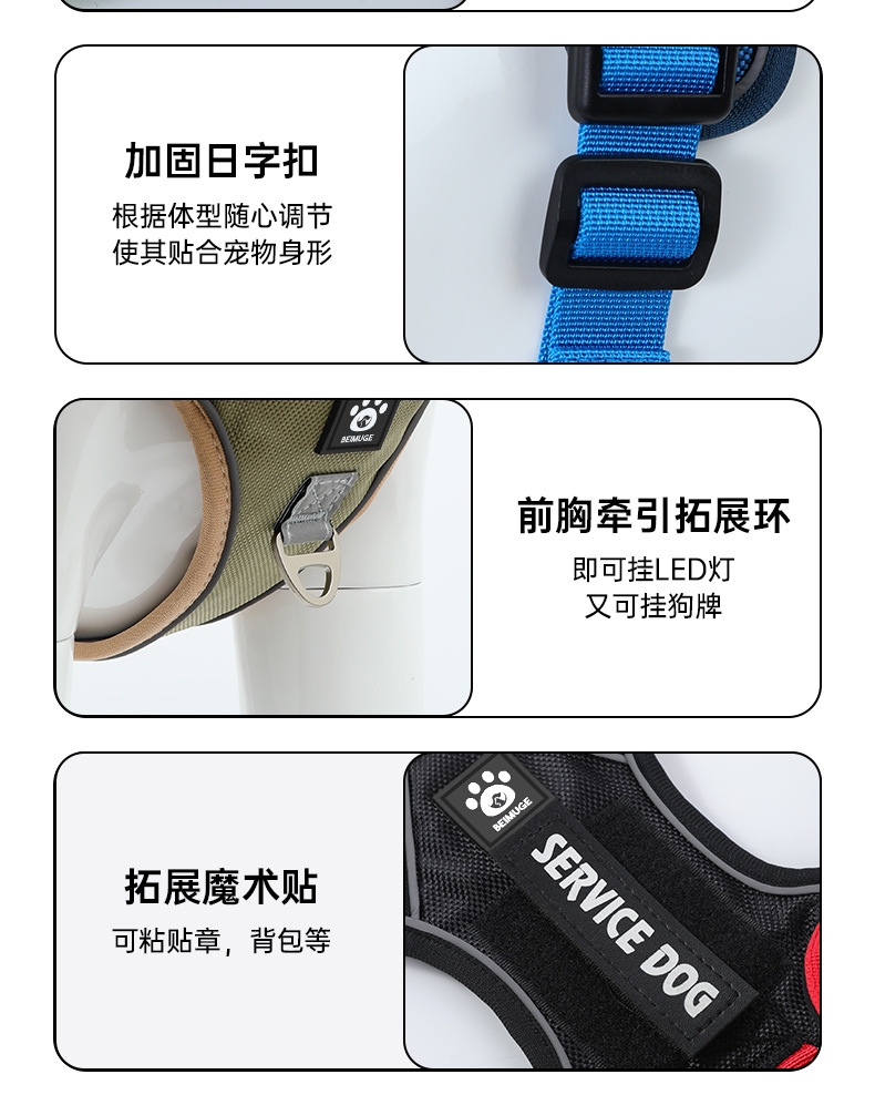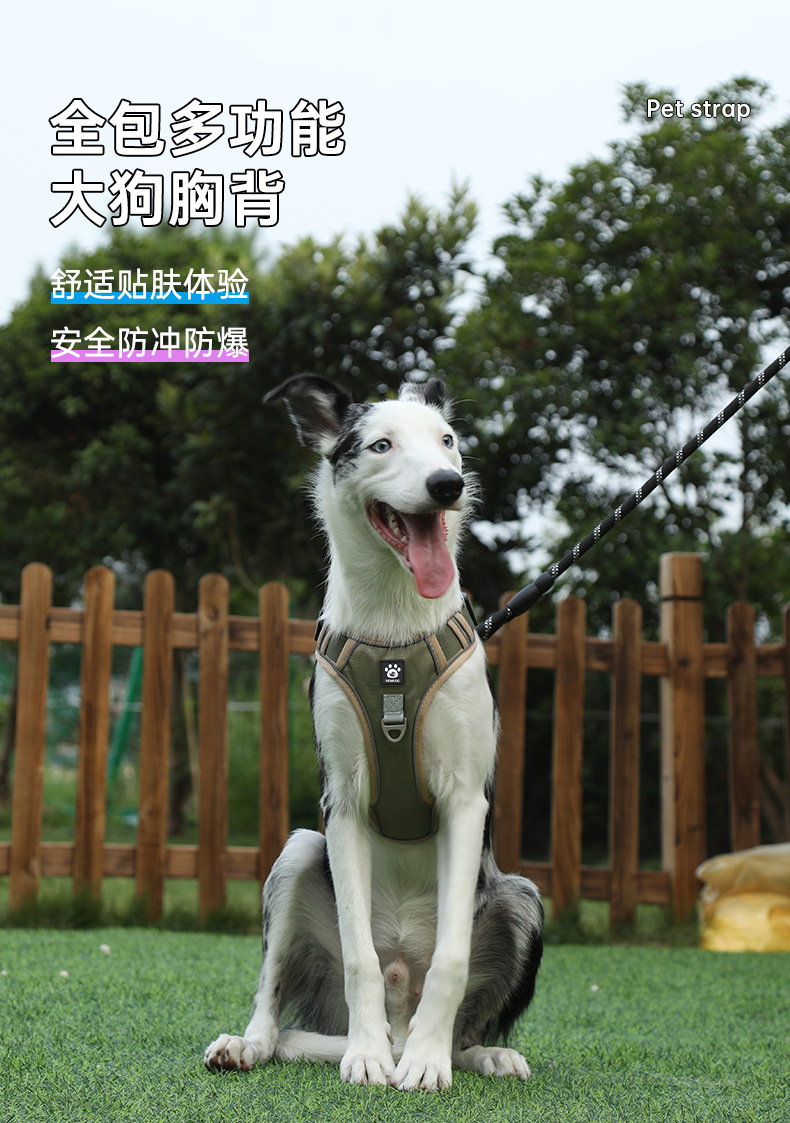 애완동물 하네스, I자형, 중대형견용 방폭형 개 산책용 로프, 목을 조절할 수 없는 대형견 견인 로프