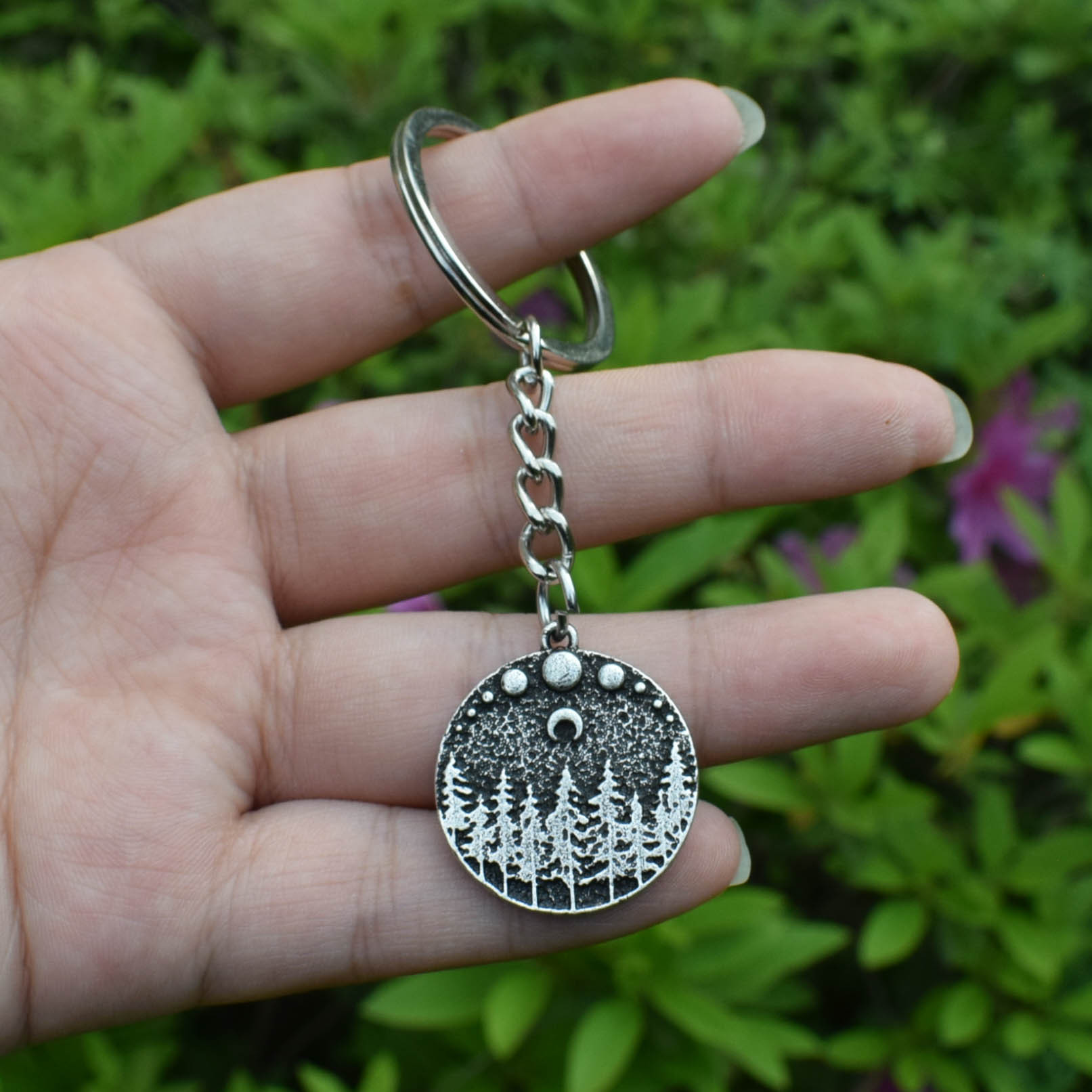 숲 문 야외 키 체인 자연 소나무 풍경 라운드 키 체인스토어 가기
