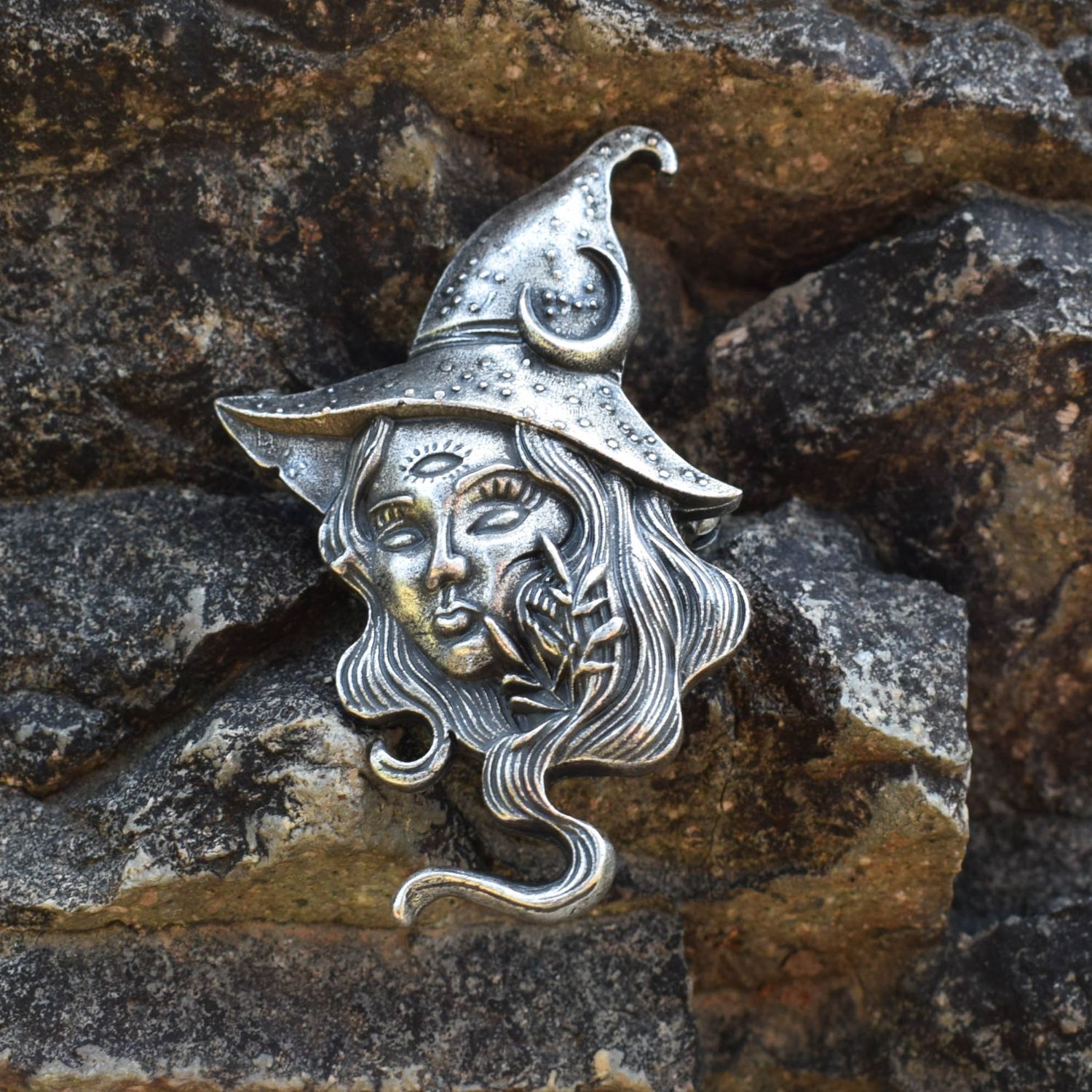 마법의 달 신비주의 마녀 브로치 여성 마법 보석 할로윈 선물