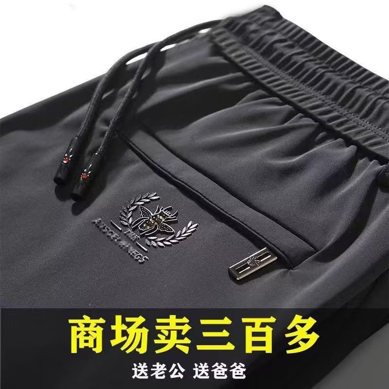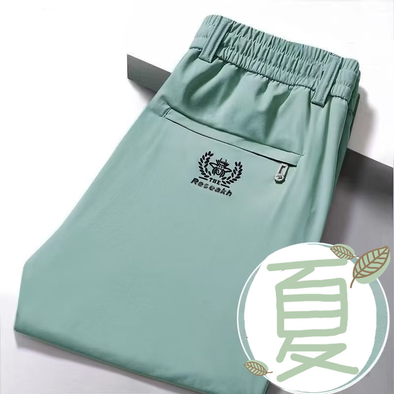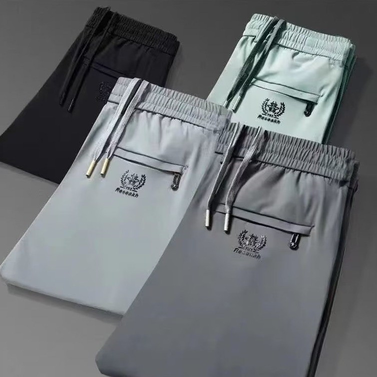 여름 2024 새로운 실키 스트레치 간단한 캐주얼 바지 레이스 업 탄성 허리 스포츠 바지 얇은 바지 남성스토어 가기