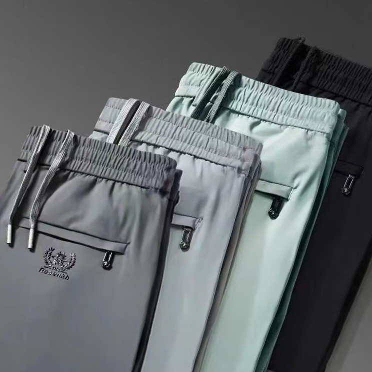 여름 2024 새로운 실키 스트레치 간단한 캐주얼 바지 레이스 업 탄성 허리 스포츠 바지 얇은 바지 남성