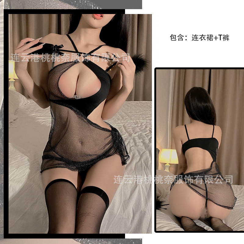 걸작 할로우 불규칙한 스타일 짧은 거즈 스커트 스타 라이트 빛나는 사이드 스트랩 관점 나이트 클럽 섹시 파자마 세트스토어 가기