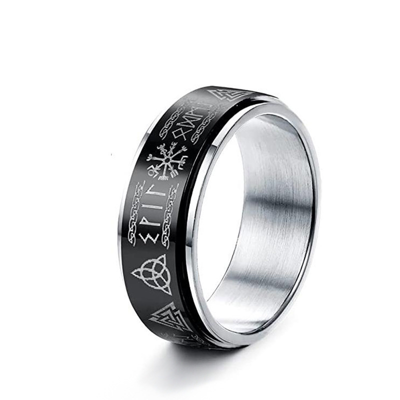 아이보 노르딕 바이킹 편지 티타늄 스틸 회전 링 룬 룬 남자의 반지