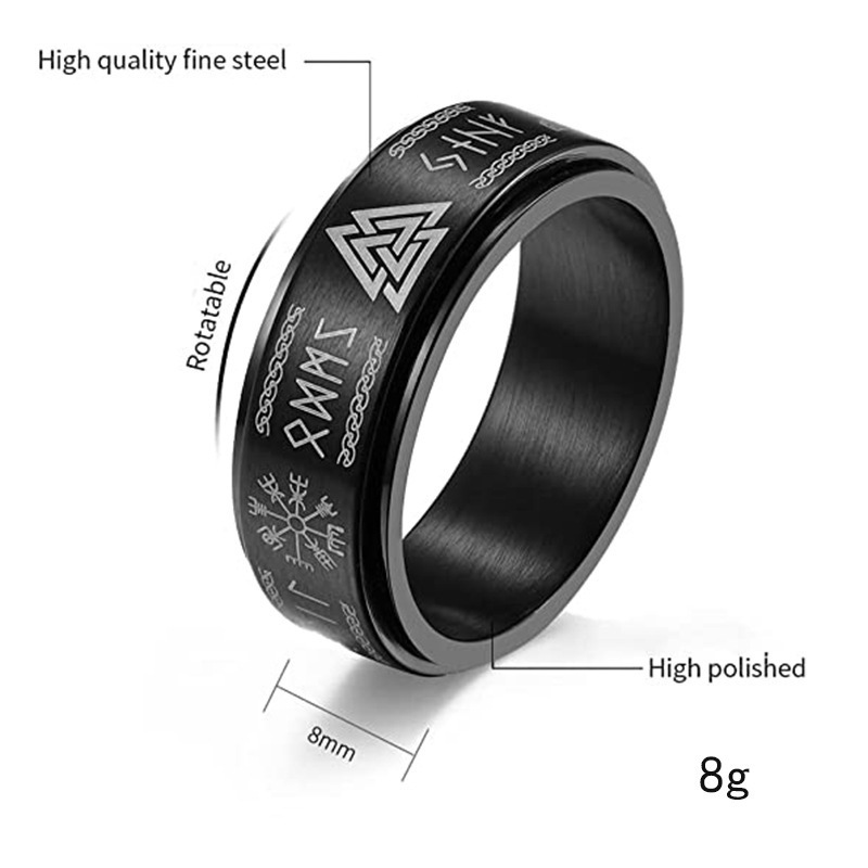 아이보 노르딕 바이킹 편지 티타늄 스틸 회전 링 룬 룬 남자의 반지스토어 가기