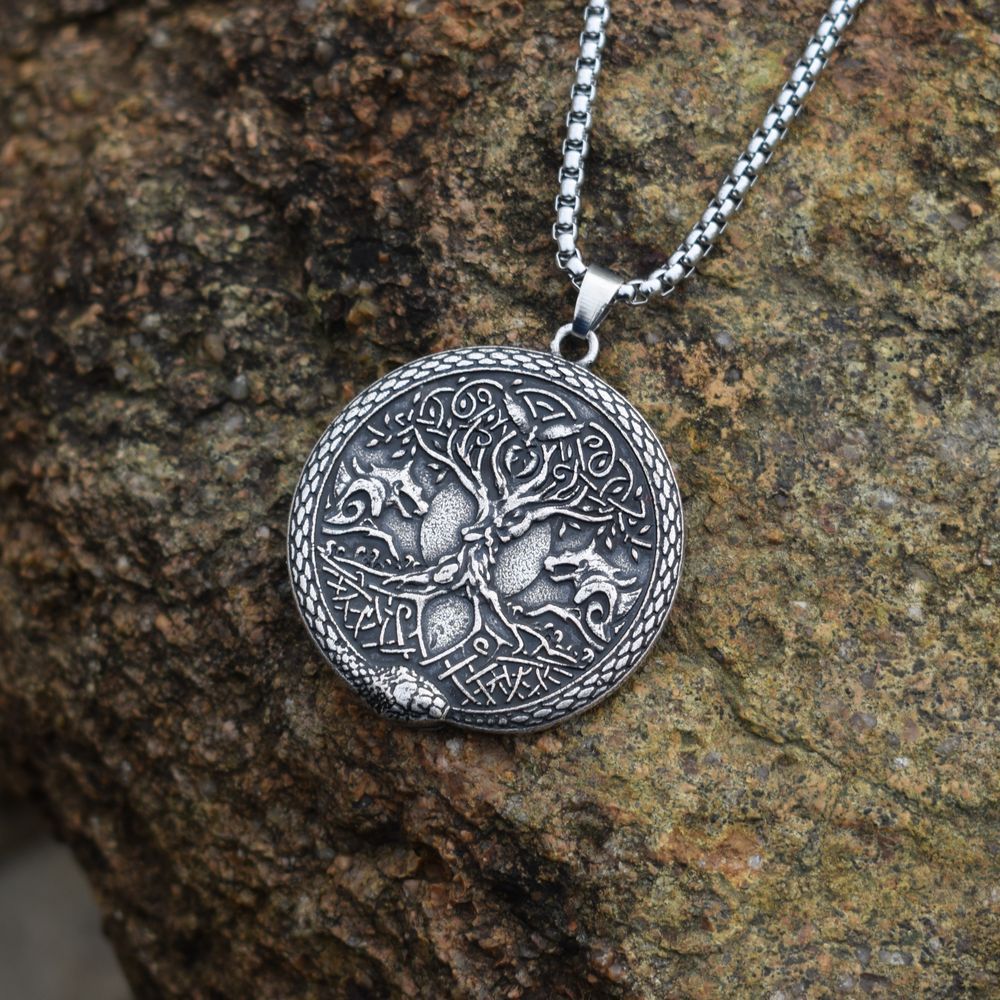양면 스테인레스 스틸 체인을 매달린 오딘의 늑대의 나무