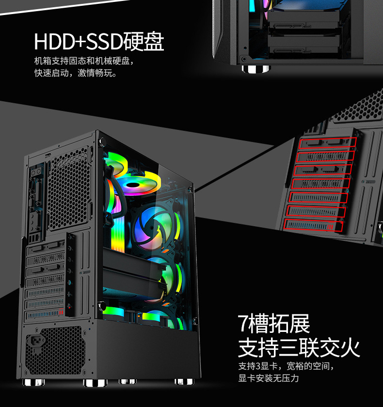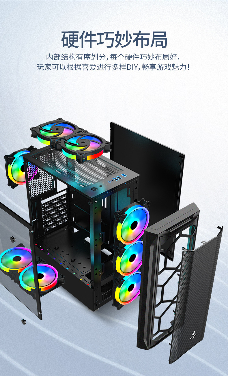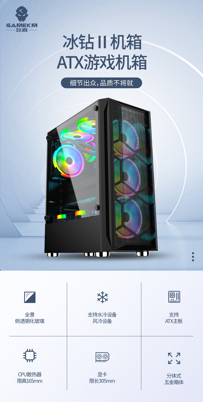 冰钻2钢化玻璃游戏PC机箱USB3.0有线金属网ATX台式电脑机箱