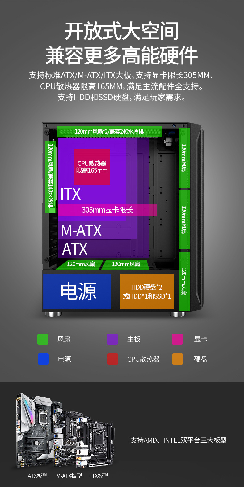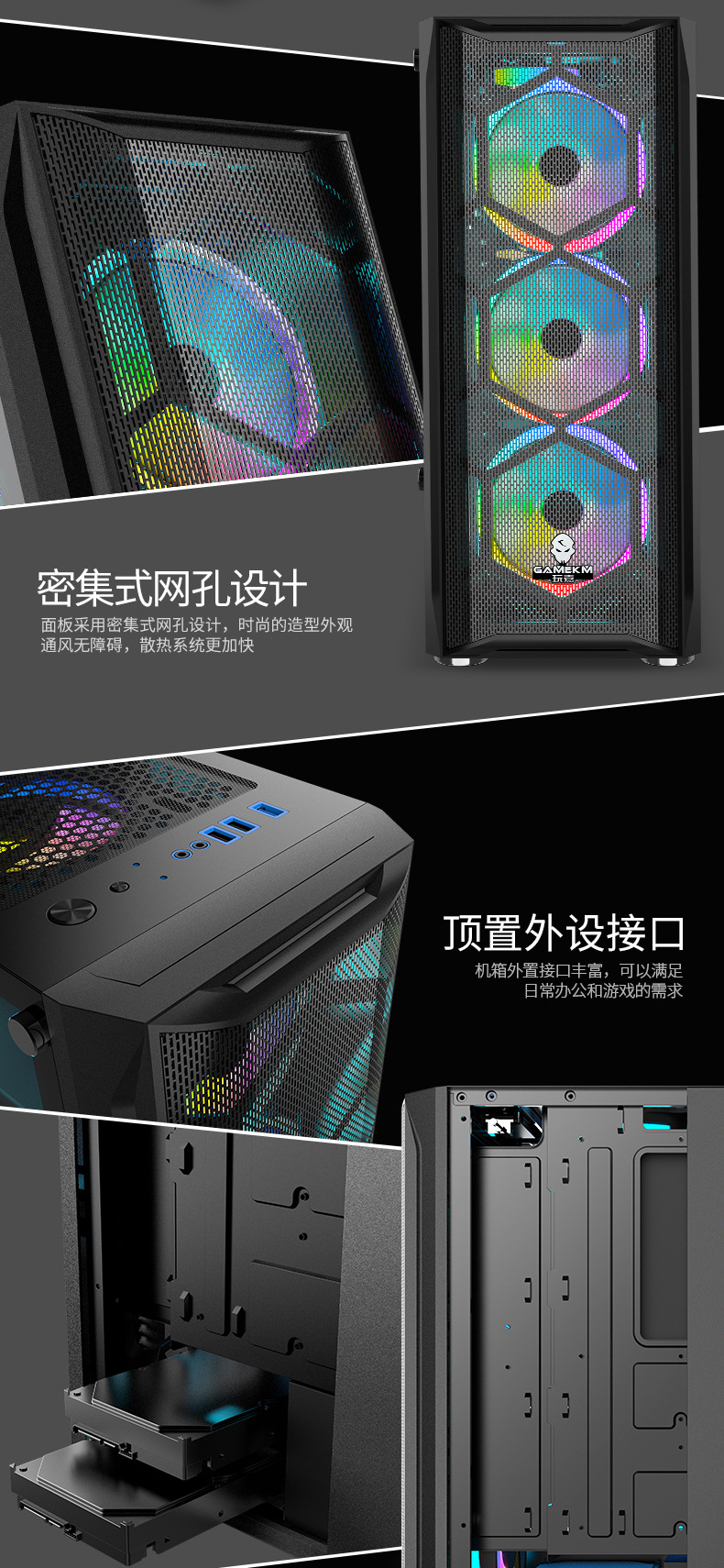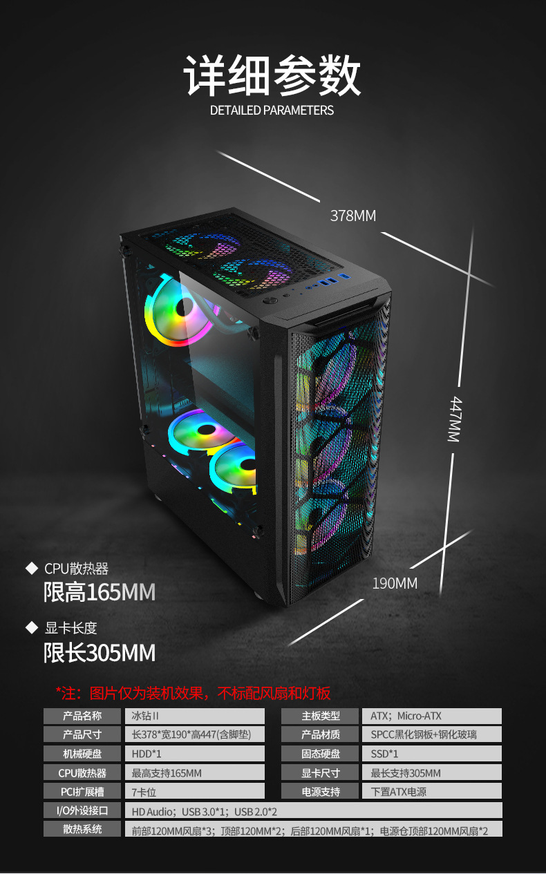 冰钻2钢化玻璃游戏PC机箱USB3.0有线金属网ATX台式电脑机箱