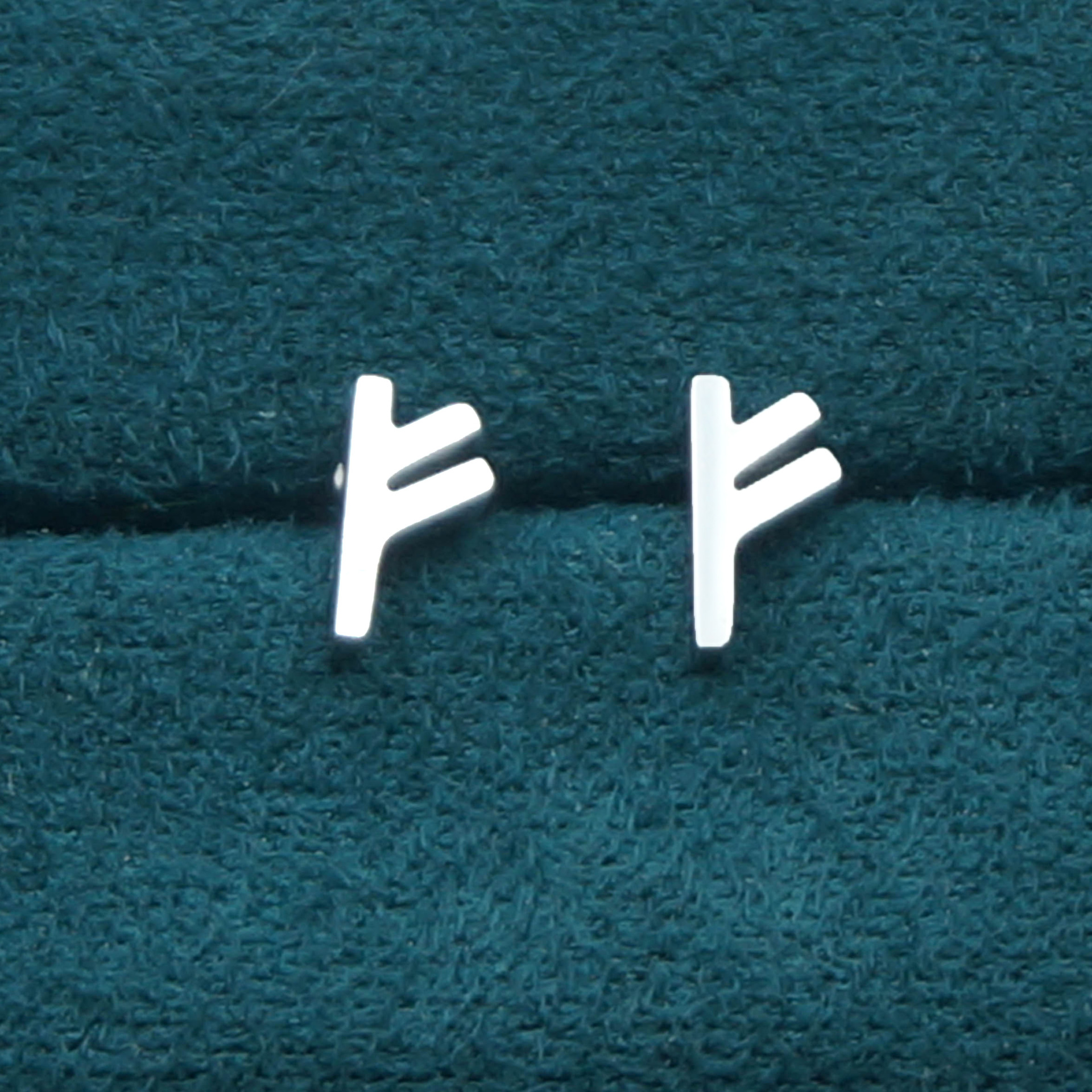 싱글 페어: 노르딕 룬 편지 스터드 귀걸이: 여성을위한 빈티지 스테인레스 스틸 귀걸이