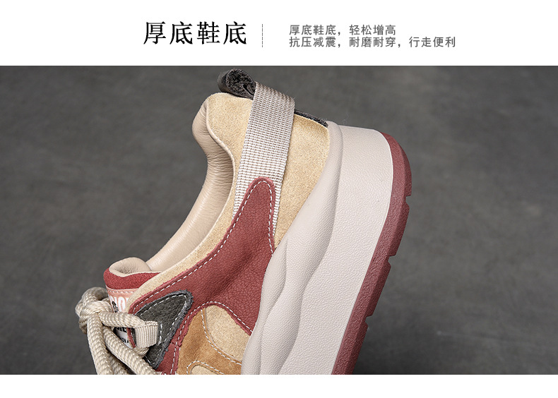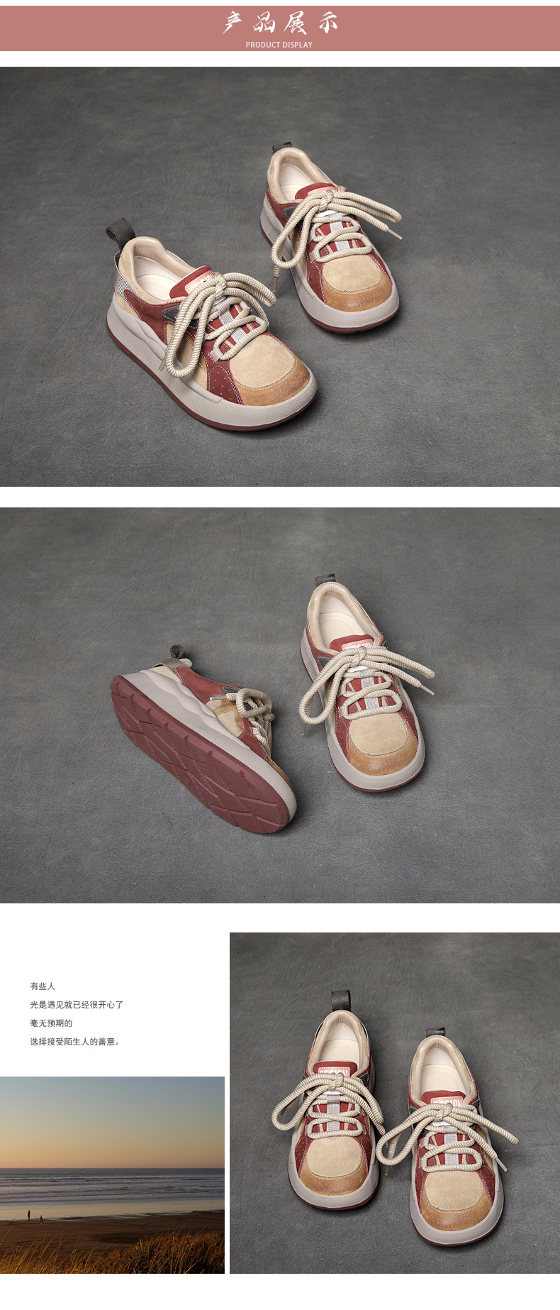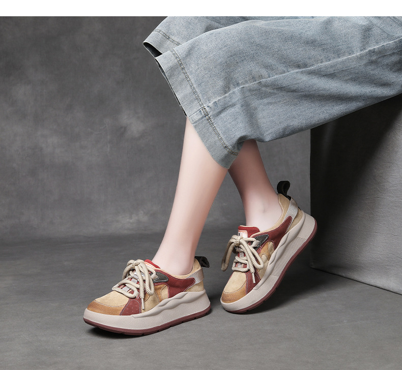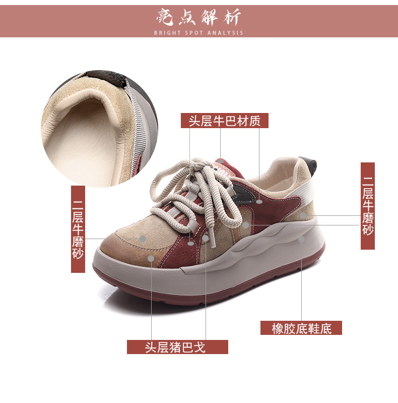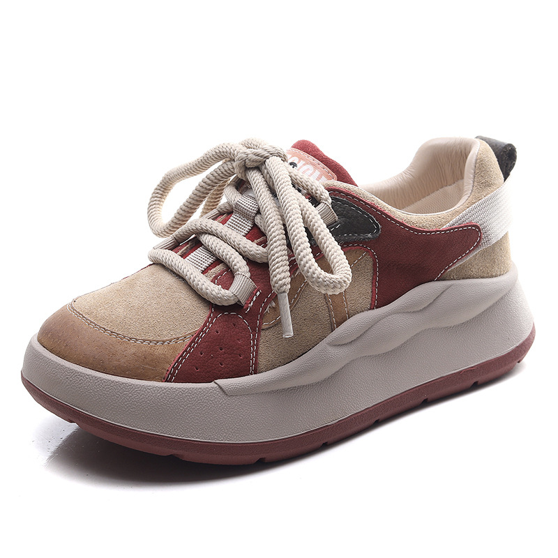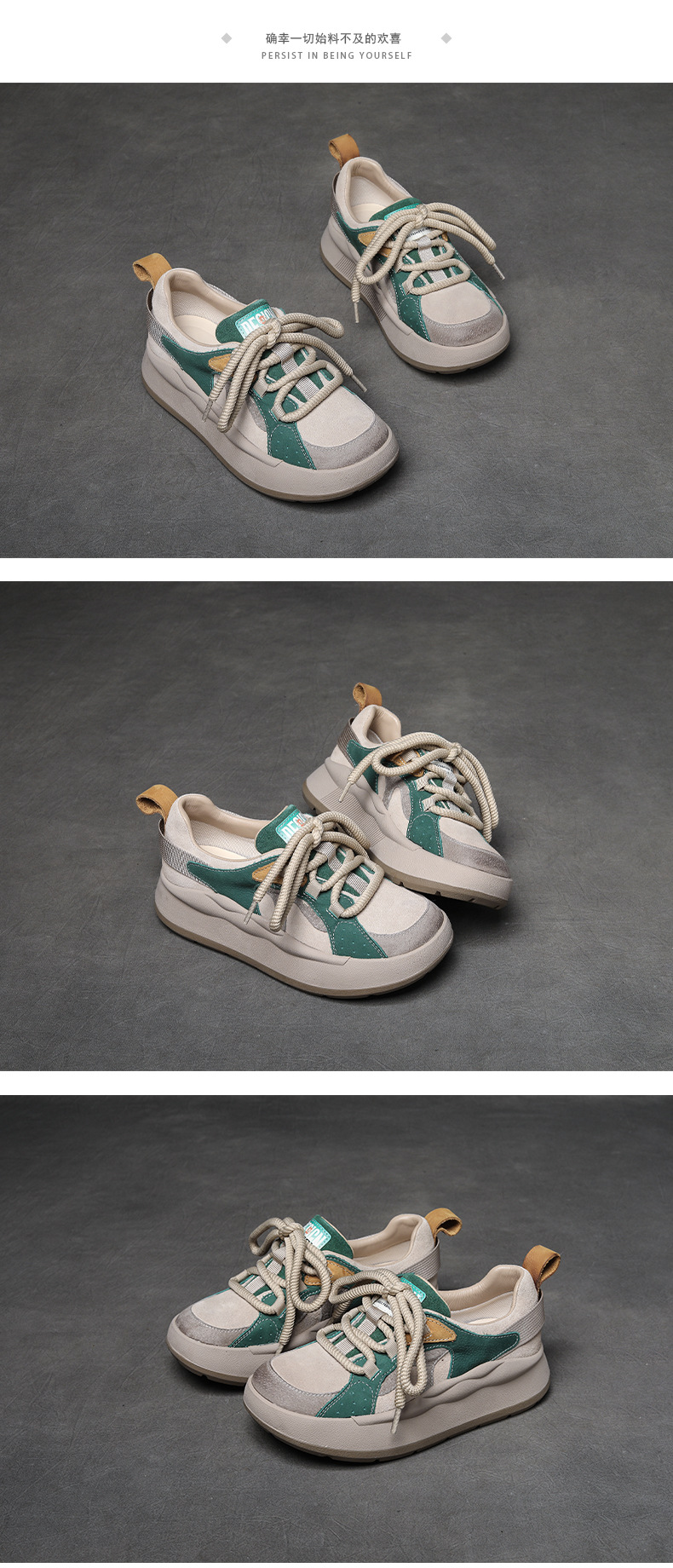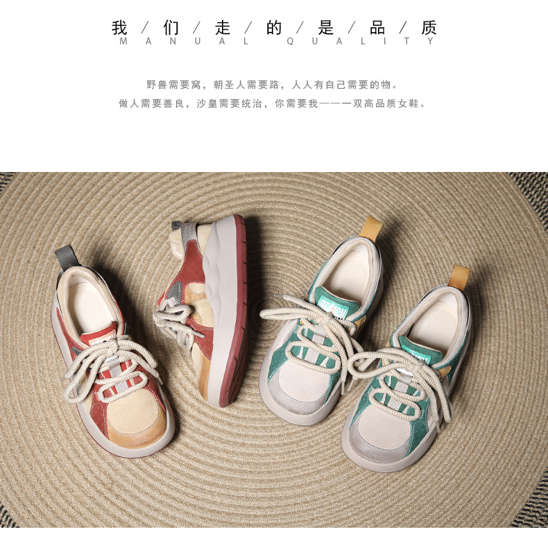 봄/여름 2020 새로운 스포츠 스타일 싱글 레이어 신발 앞 레이스 업 컬러 매칭 복고풍 세련된 탑 레이어 소 가죽 캐주얼 여성 신발스토어 가기