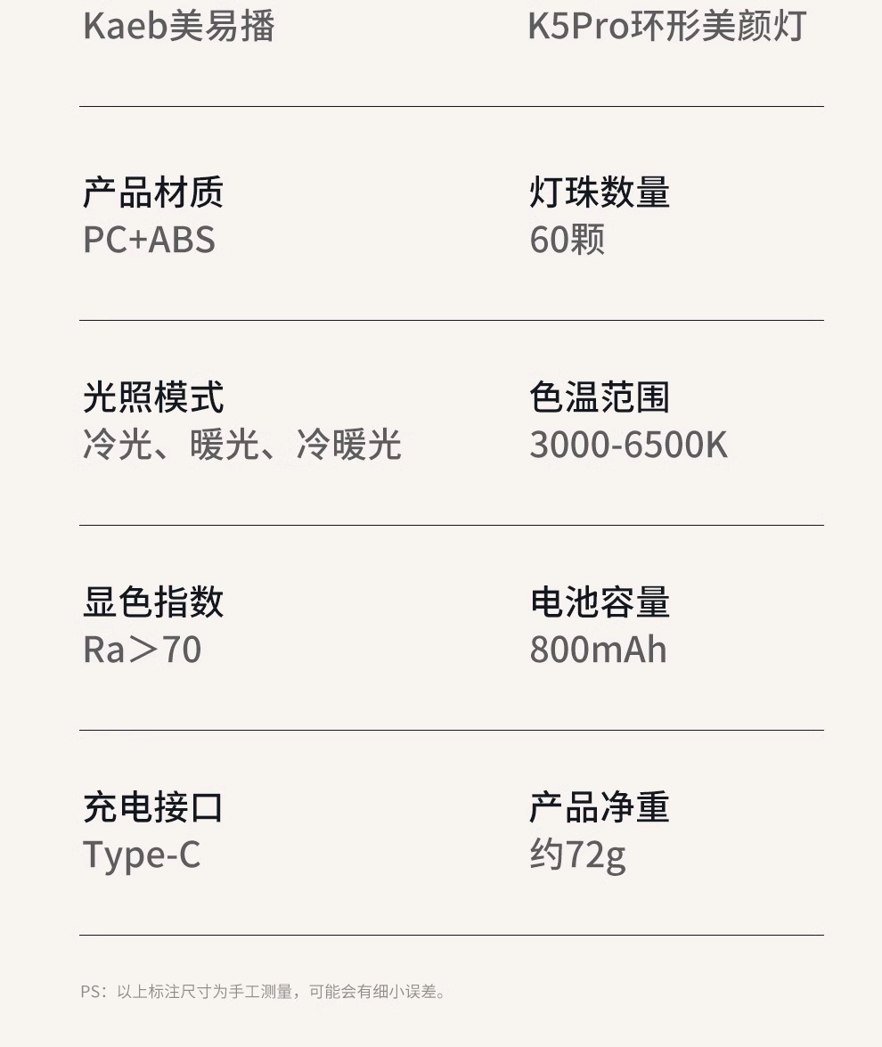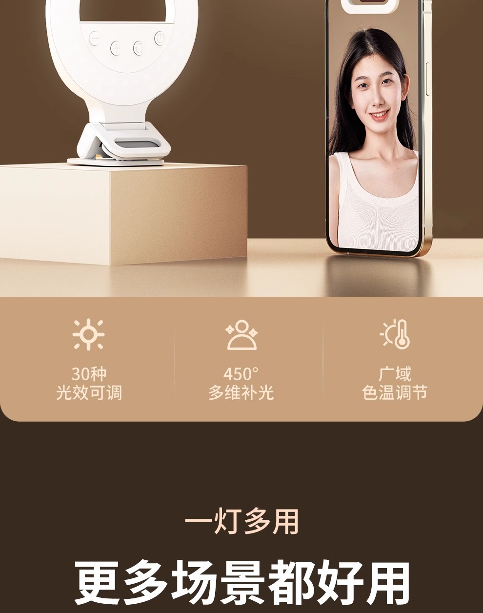 • 라이트 세트 채우기 [링 라이트 + 전체 스크린 라이트] 더블 라이트가 더 자연 스럽습니다.