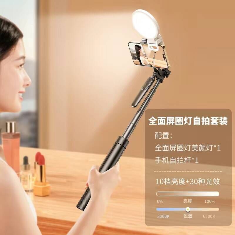 • 반지 빛 [차갑고 따뜻한 흰색 채우기 빛] 휴대용 셀카 스틱 세트 + 무선 셀카