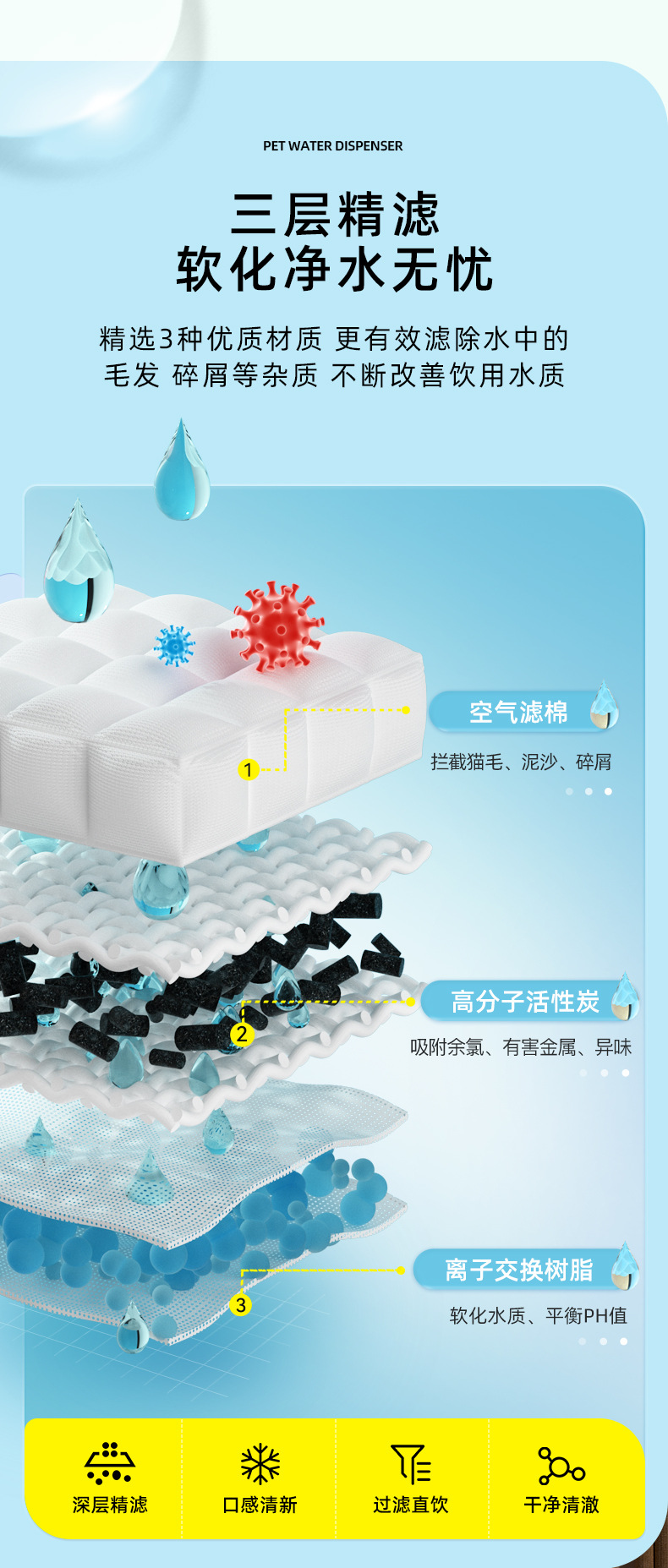 • 마오산 봄 (3 층 염소 및 냄새 제거 2L) 바이오닉 흐르는 물