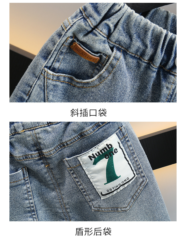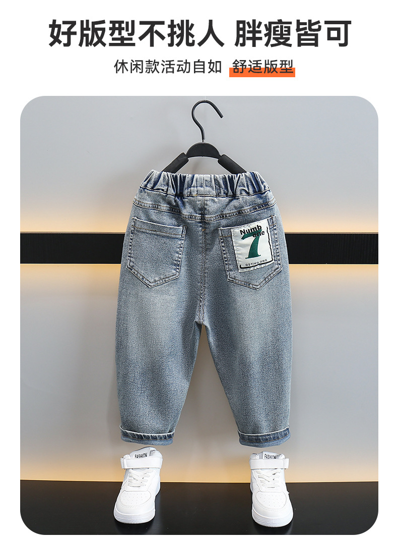 남자들의 잘 생긴 청바지 봄 새로운 어린이 편지 유럽과 미국 소년 데님 바지 대외 무역 어린이 바지 도매스토어 가기