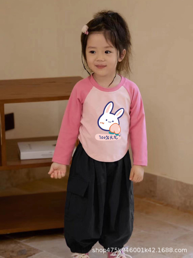 소녀 바닥 셔츠 봄과 가을 순수한면 긴팔 티셔츠 얇은 서양식 만화 슬림 어린이 짧은 튀김 스트리트 탑스토어 가기