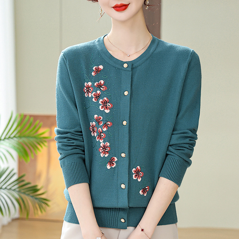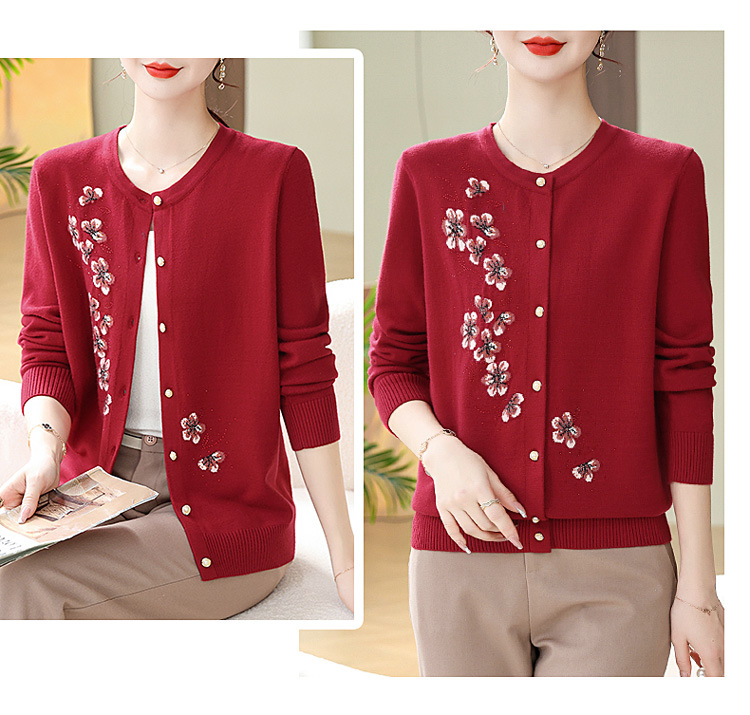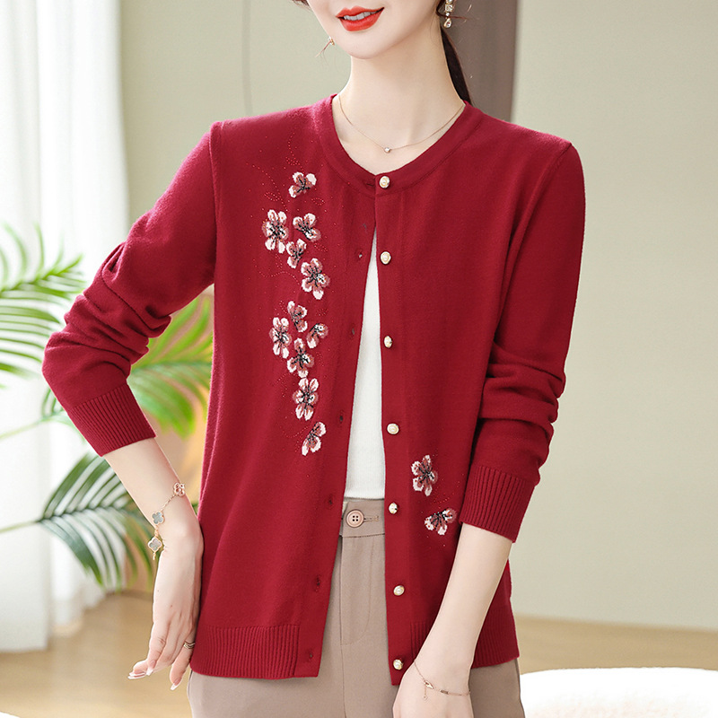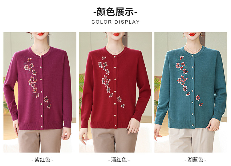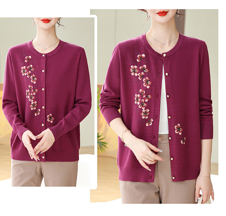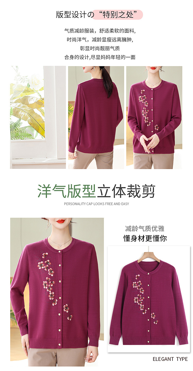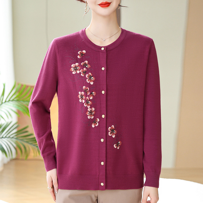 새로운 봄과 가을 바닥 노인 니트 카디건 할머니 코트 어머니의 얇은 스웨터 중년 및 노인 겉옷 옷스토어 가기