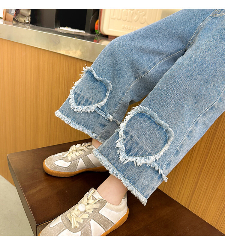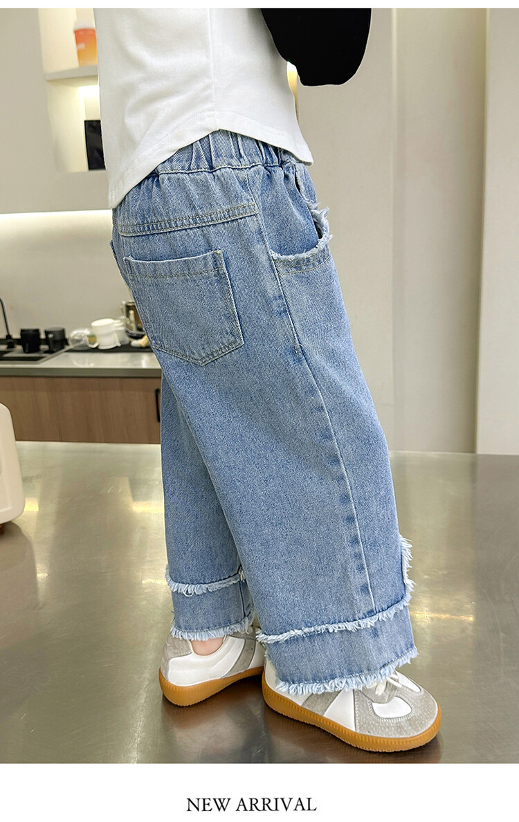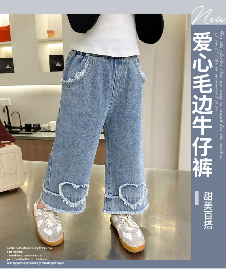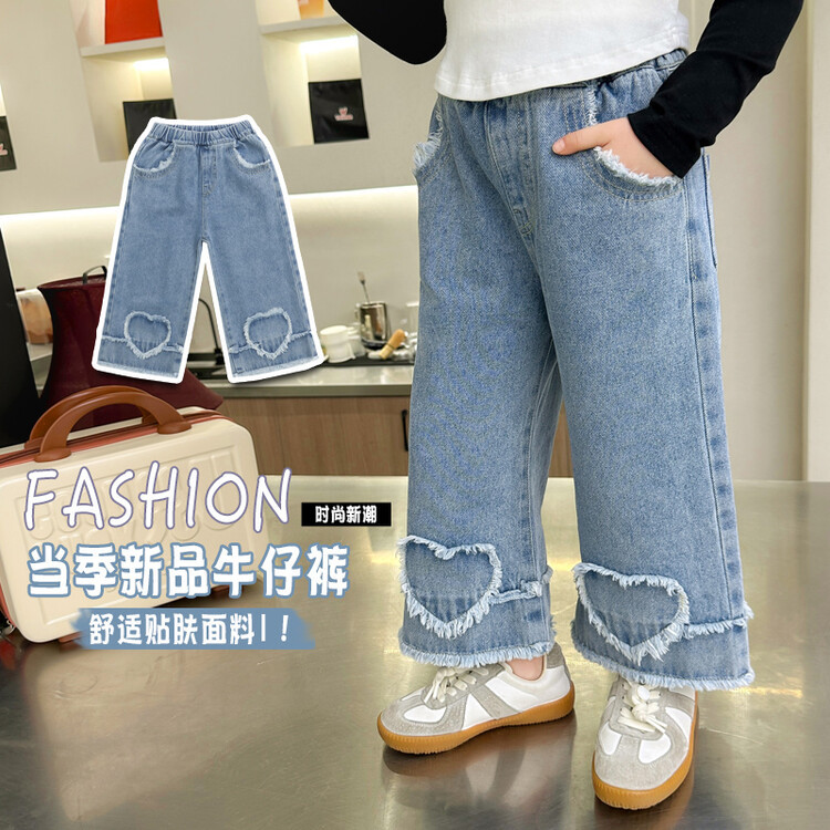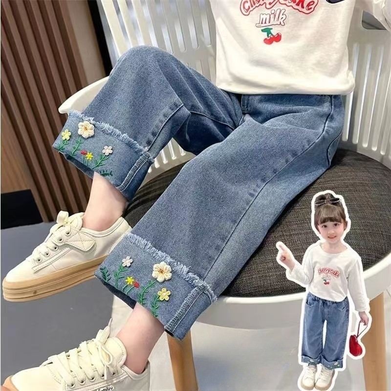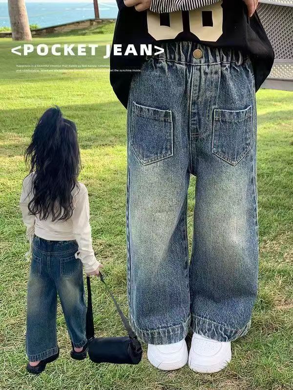 소녀 넓은 다리 바지 2024 봄과 가을 새 스타일 소녀 스트레이트 다리 느슨한 청바지 어린이 스타일 한국 스타일 느슨한 바지스토어 가기