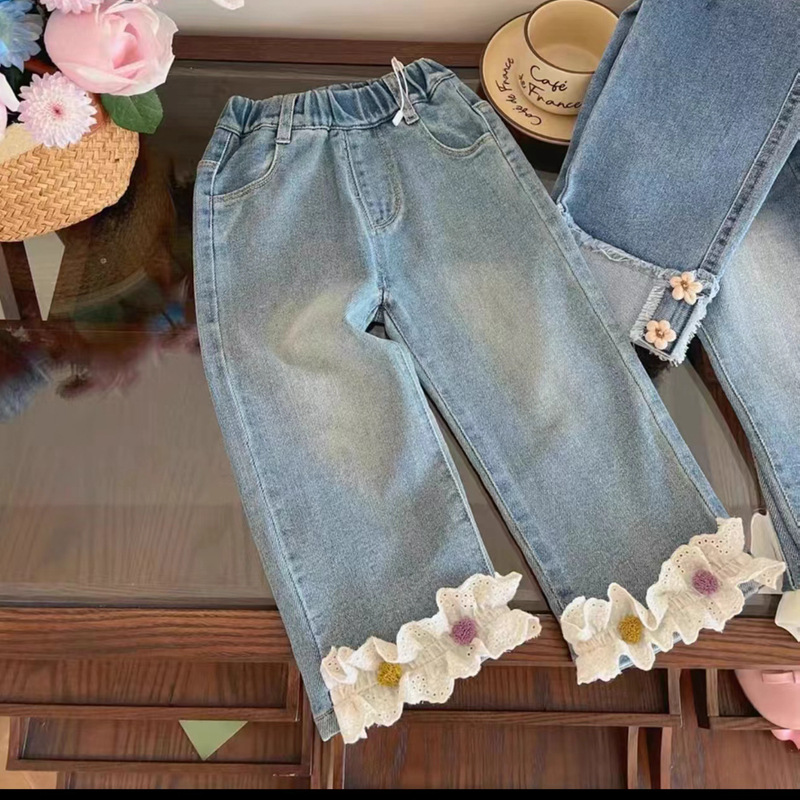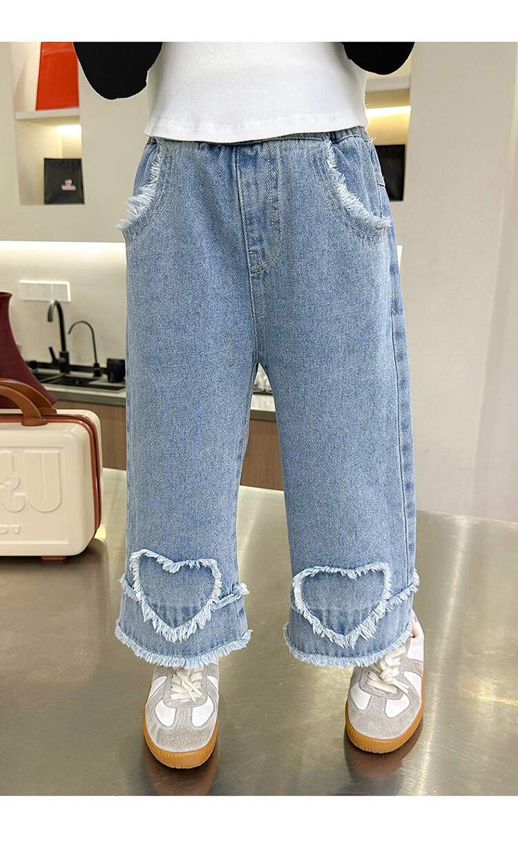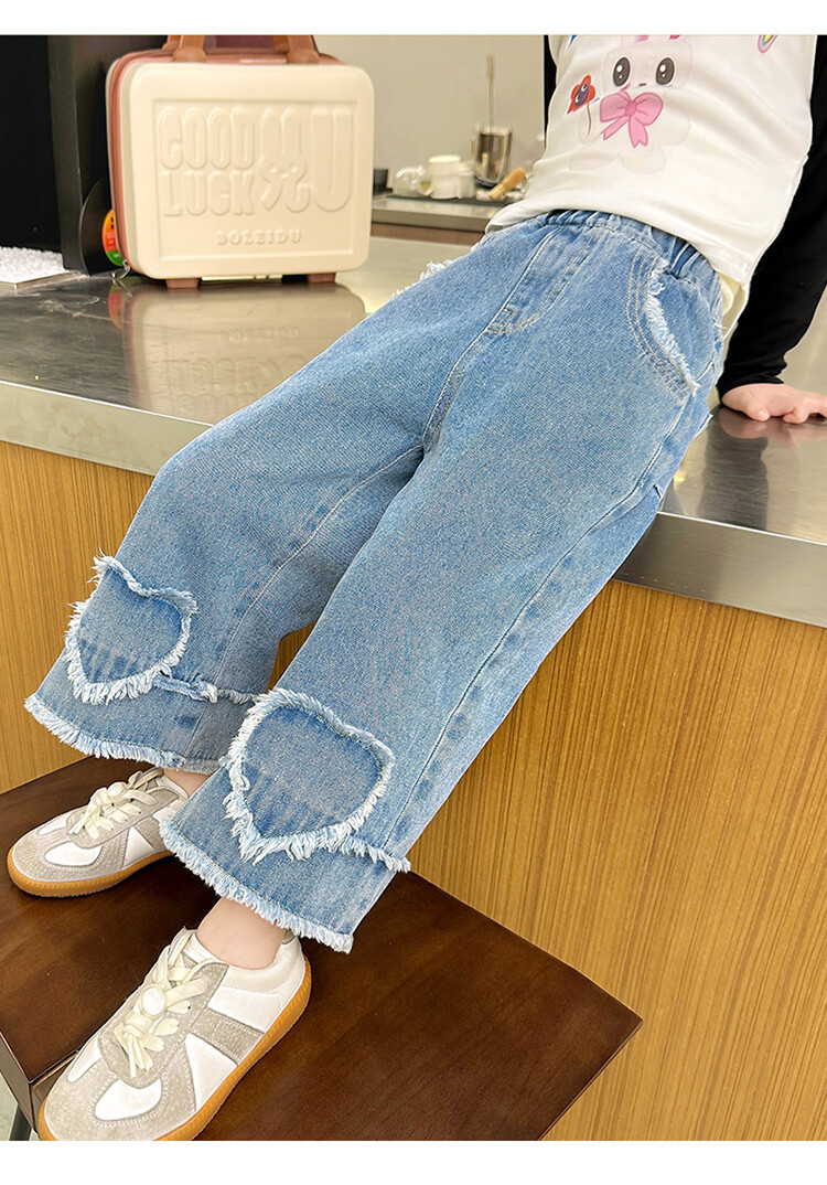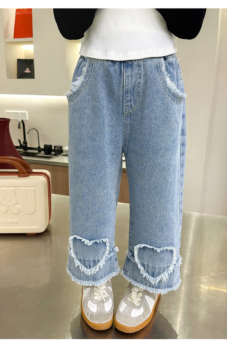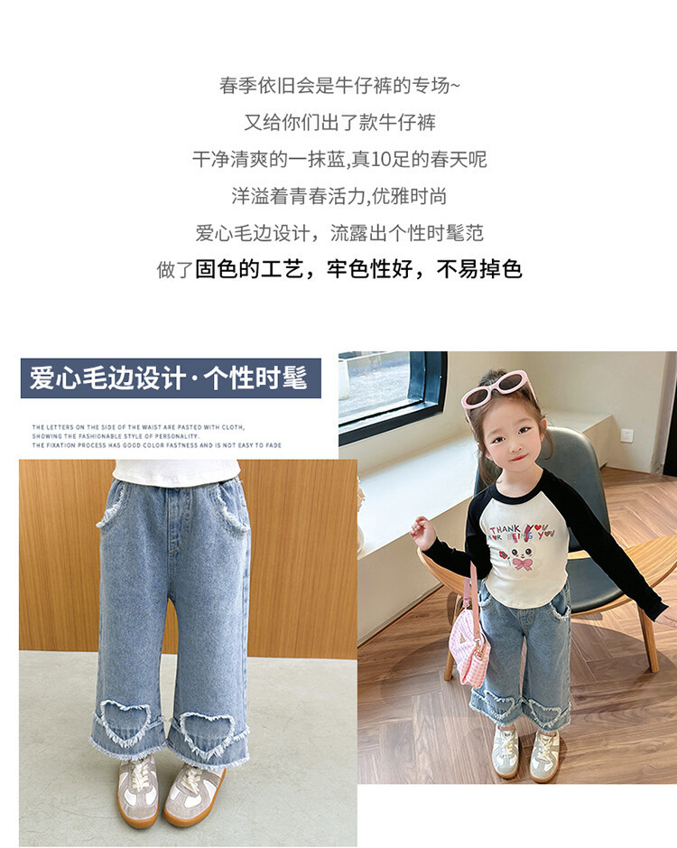 소녀 넓은 다리 바지 2024 봄과 가을 새 스타일 소녀 스트레이트 다리 느슨한 청바지 어린이 스타일 한국 스타일 느슨한 바지스토어 가기