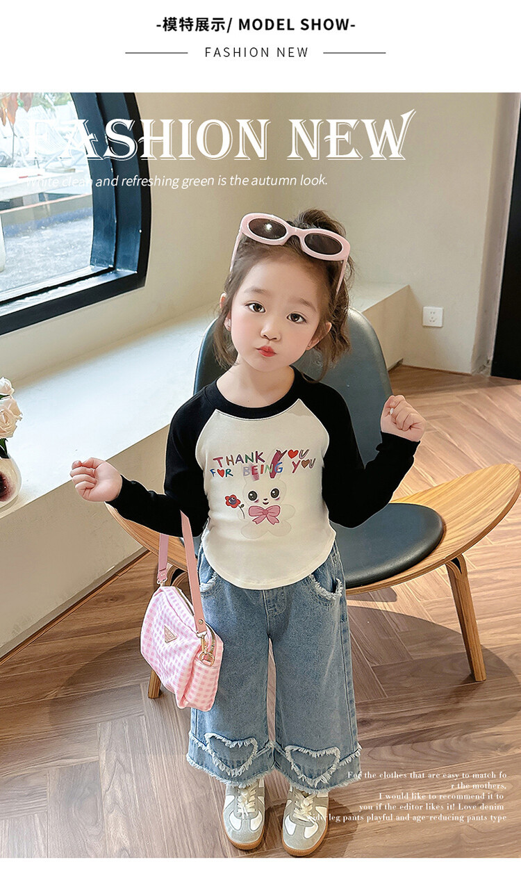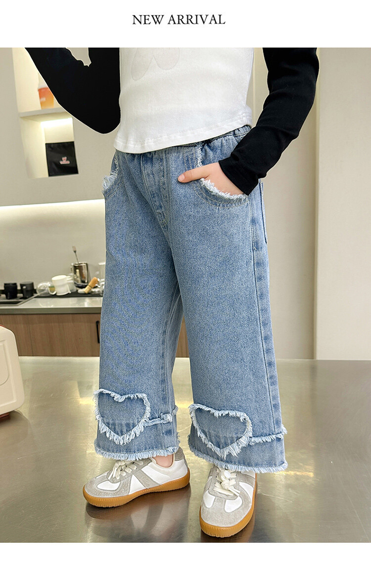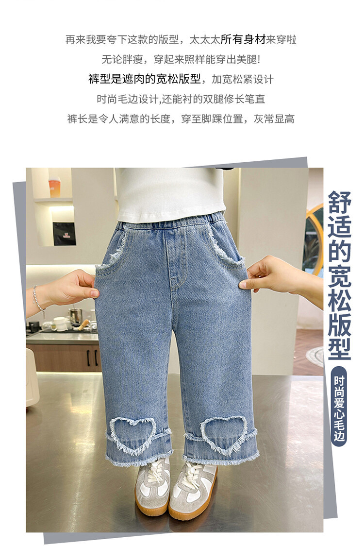 소녀 넓은 다리 바지 2024 봄과 가을 새 스타일 소녀 스트레이트 다리 느슨한 청바지 어린이 스타일 한국 스타일 느슨한 바지