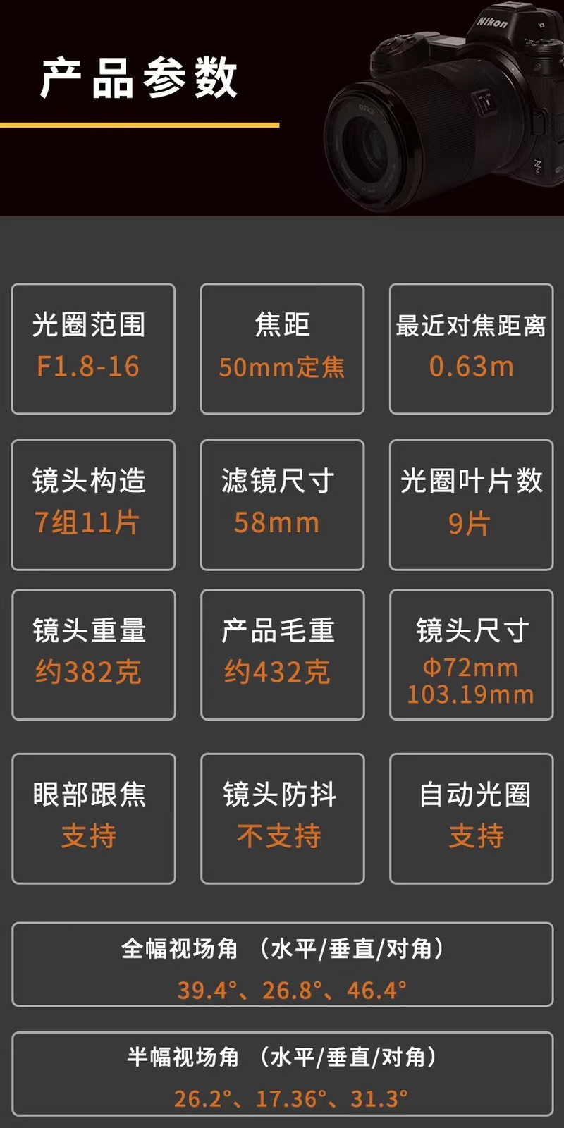 MEKE 50 mmf1.8 자동 초점 렌즈 큰 조리개 풀 프레임 마이크로 단일 Z 총검 50F18Z스토어 가기