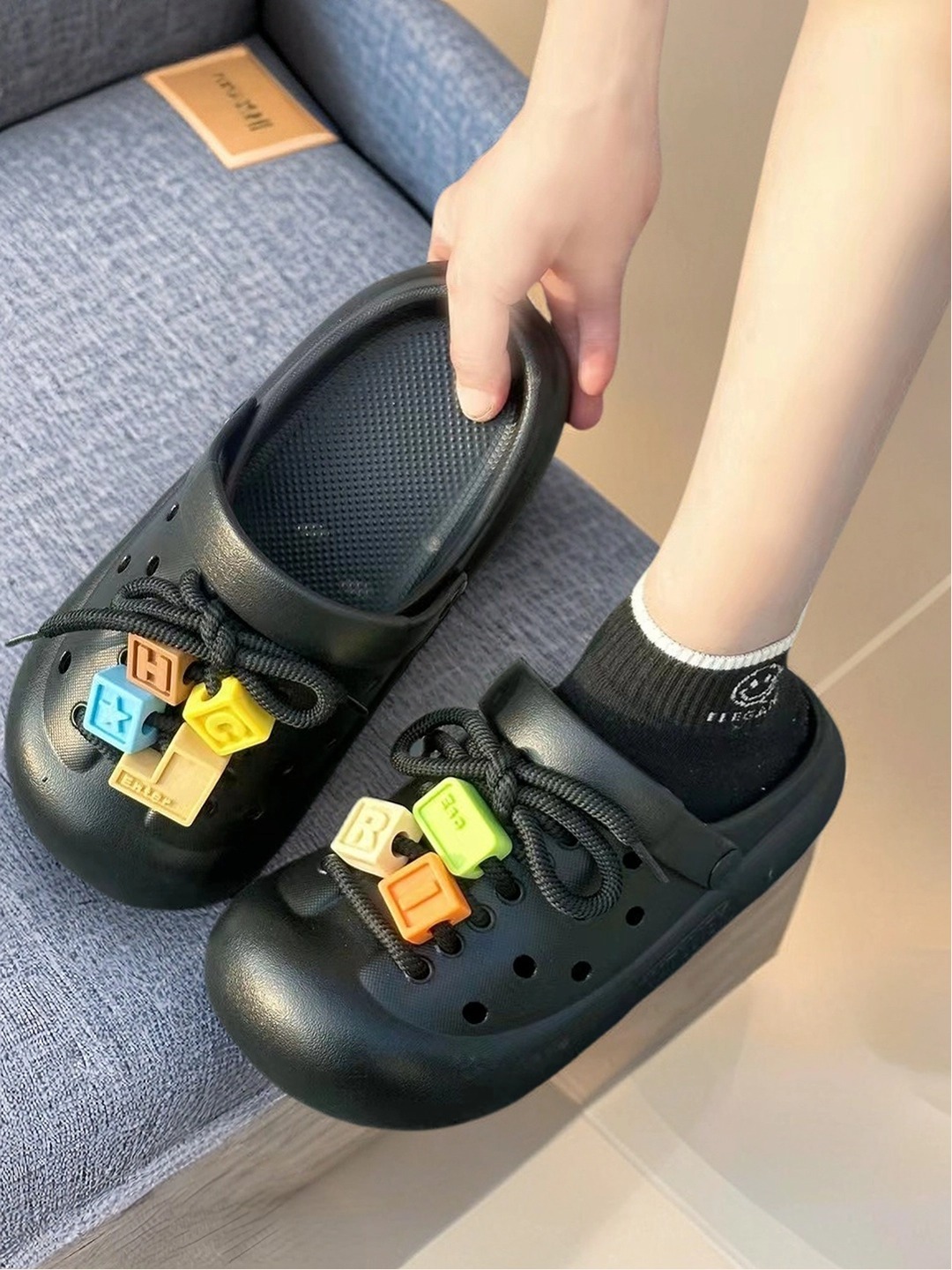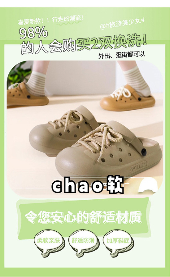 EVA2024 새로운 동굴 신발 귀여운 패셔너블 여성 여름 인터넷 축하 덩이 느낌 외부 착용 증가 두꺼운 단독 미끄럼 방지