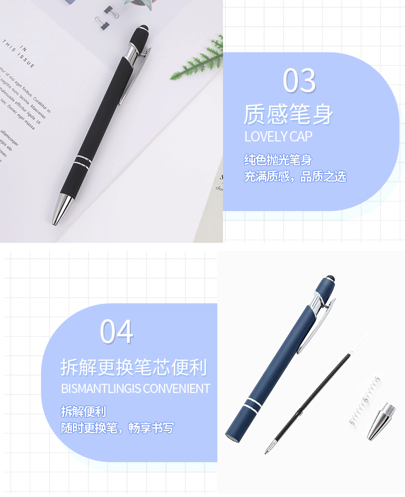 금속 알루미늄로드 프레스 메이지 펜 블랙 터치 스크린 터치 펜 커패시터 볼펜 인쇄 가능한 로고 공장 직접 판매스토어 가기