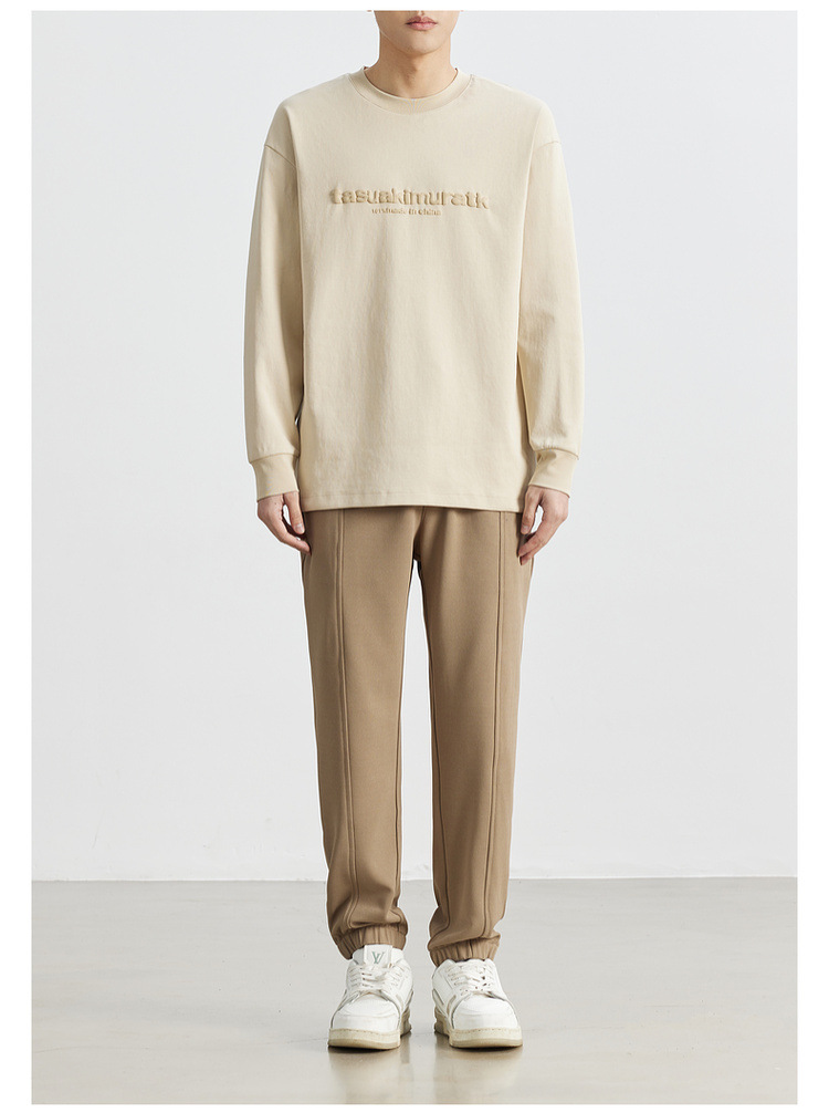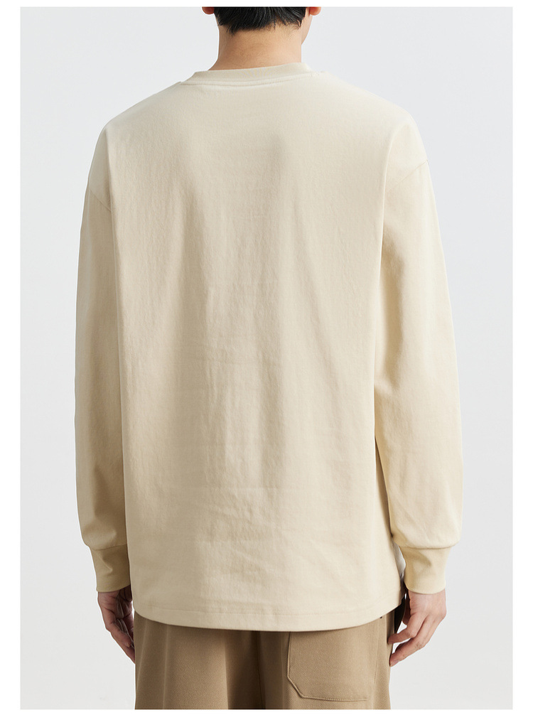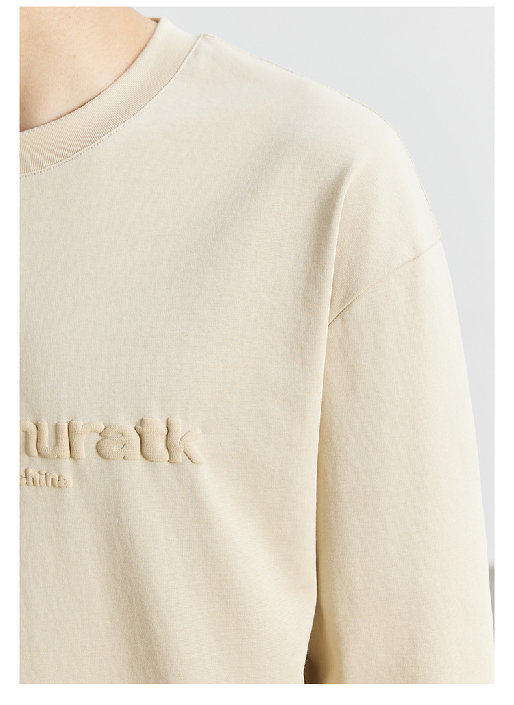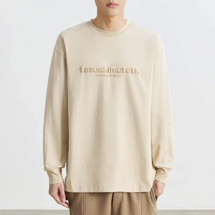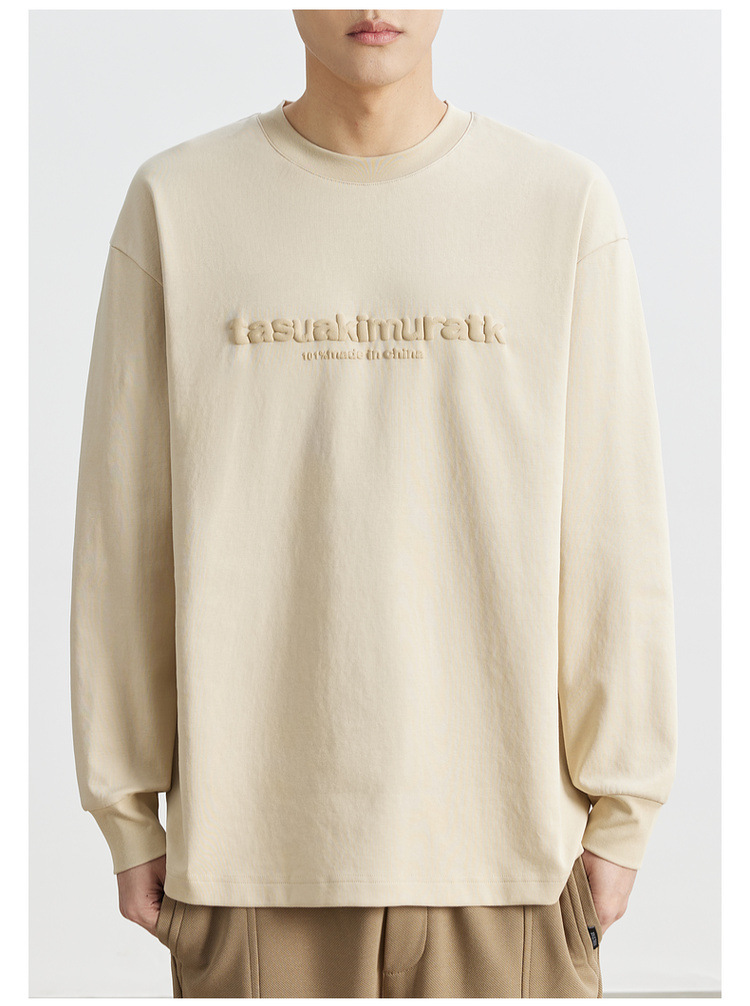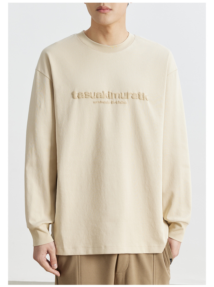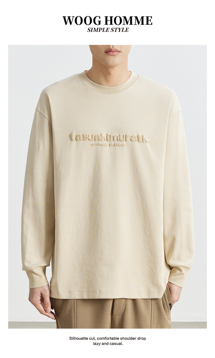 라운드 넥 양각 프린트 남성용 고급 긴팔 티셔츠 2025 봄, 가을 새로운 스타일 약간 느슨한 내부 레이어링 셔츠스토어 가기