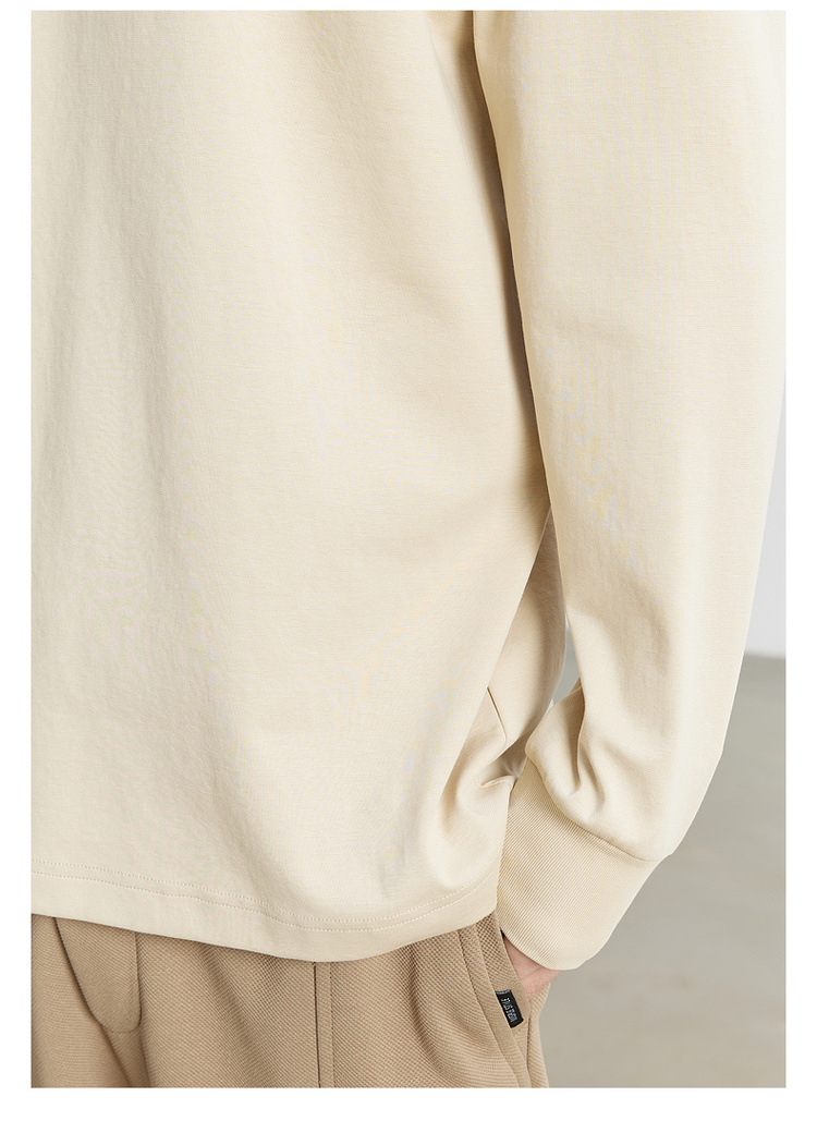 라운드 넥 양각 프린트 남성용 고급 긴팔 티셔츠 2025 봄, 가을 새로운 스타일 약간 느슨한 내부 레이어링 셔츠