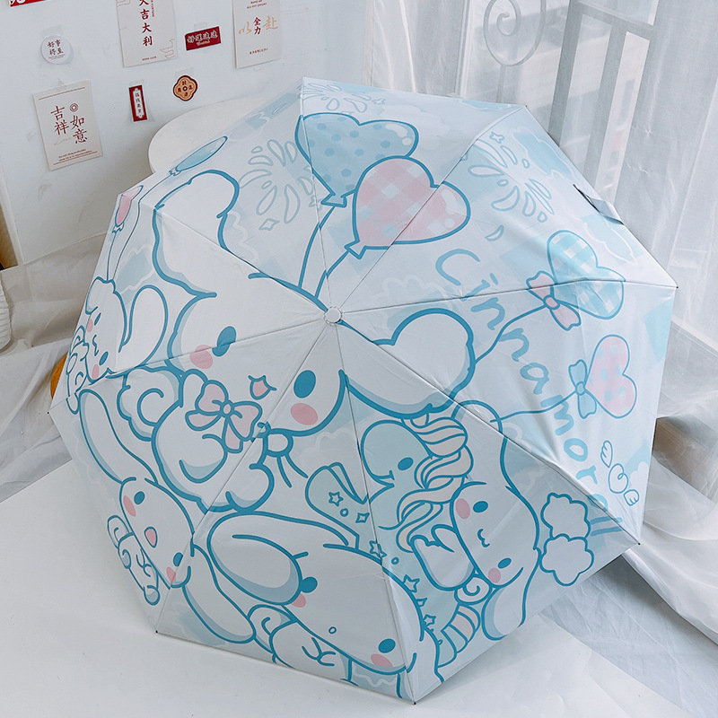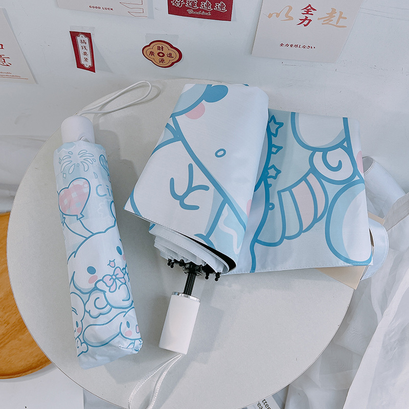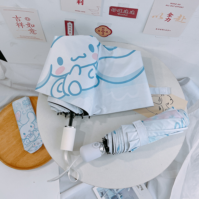 산리오 유구이 개 태양 우산 태양 우산 태양 보호 UV 검은 접착제 만화 귀여운 아이들스토어 가기