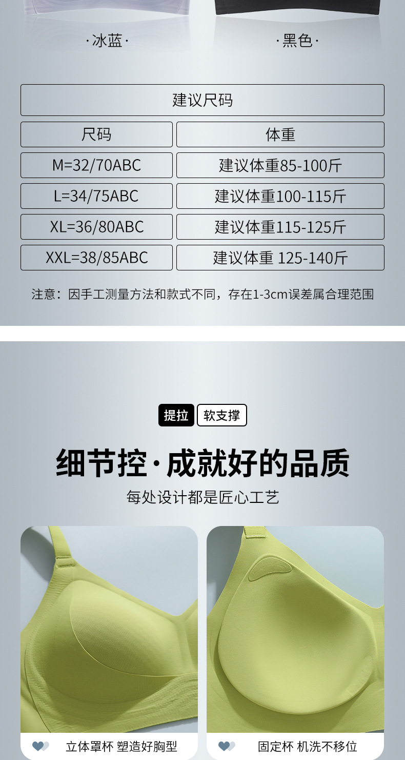 • XXL = 38/85ABC (권장 체중 62.50 kg-70.00 kg