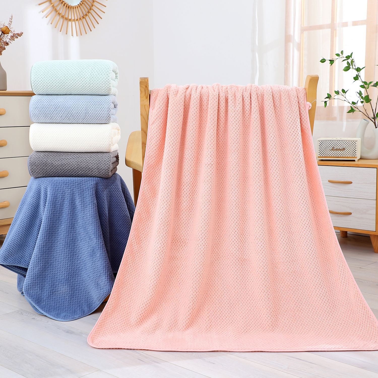 크로스보더 파인애플 패턴 90*170 가정용 대형 두꺼운 성인용 목욕 속건 타월 벌집형 파인애플 패턴 목욕 타월스토어 가기