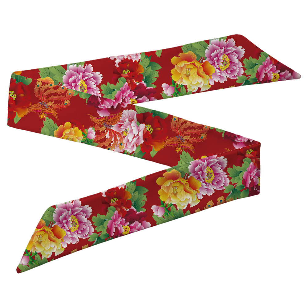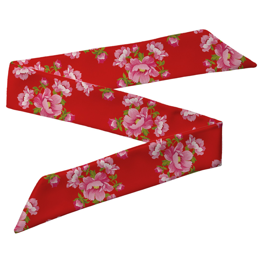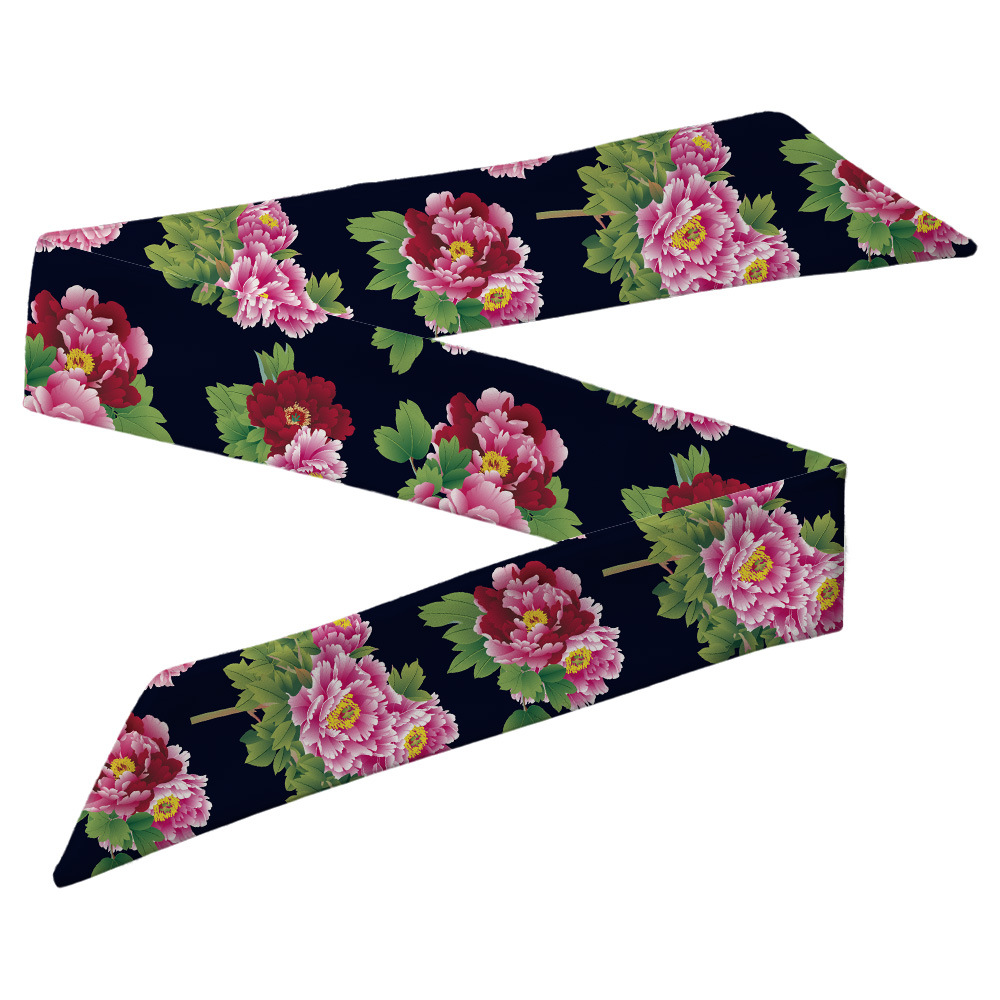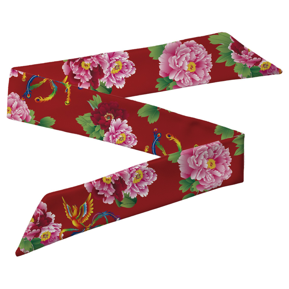 동북 큰 꽃 모란 실크 스카프 리본 긴 여성 헤어 타이 백 헤어 밴드 올 매치 스카프