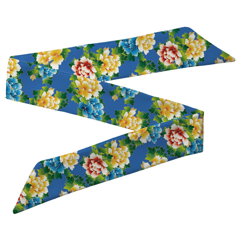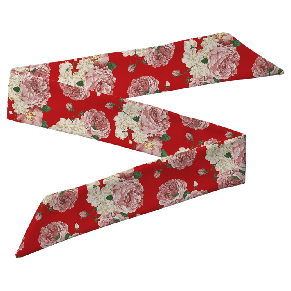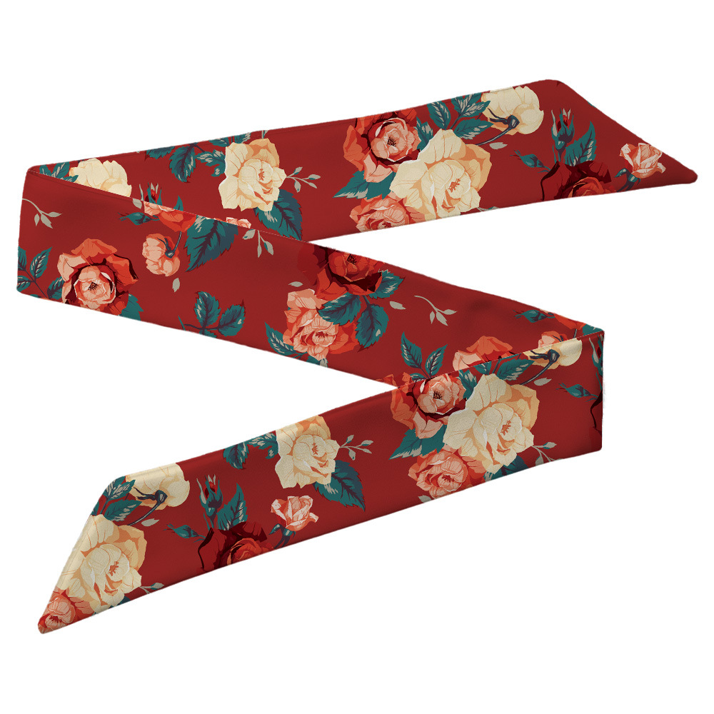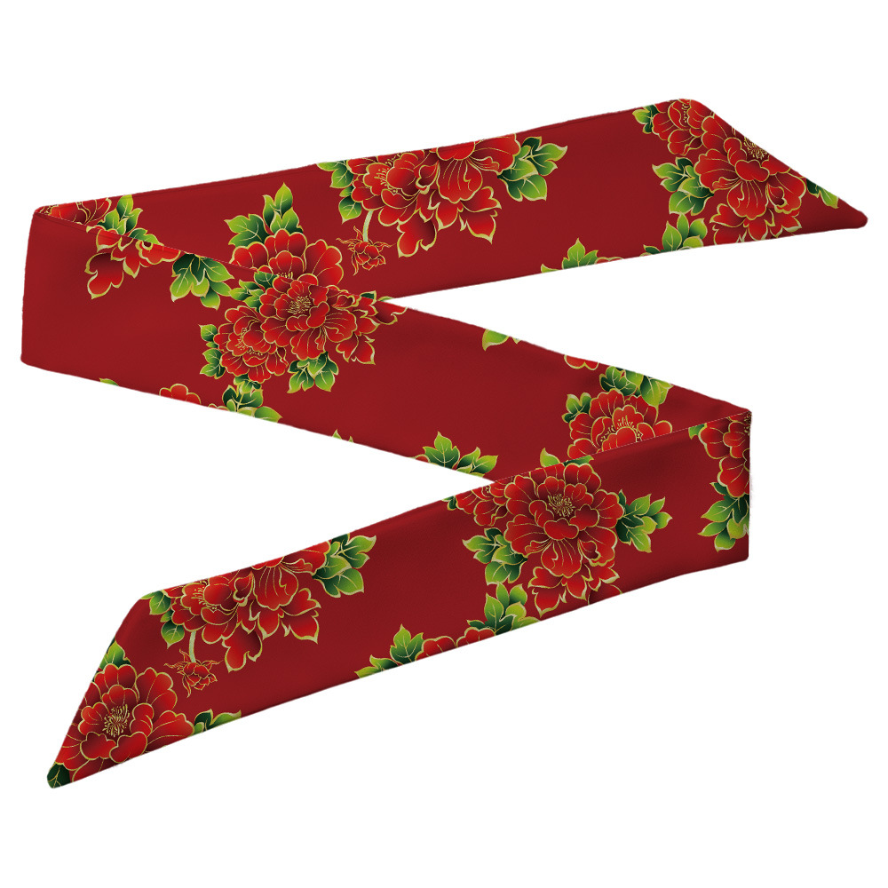 동북 큰 꽃 모란 실크 스카프 리본 긴 여성 헤어 타이 백 헤어 밴드 올 매치 스카프