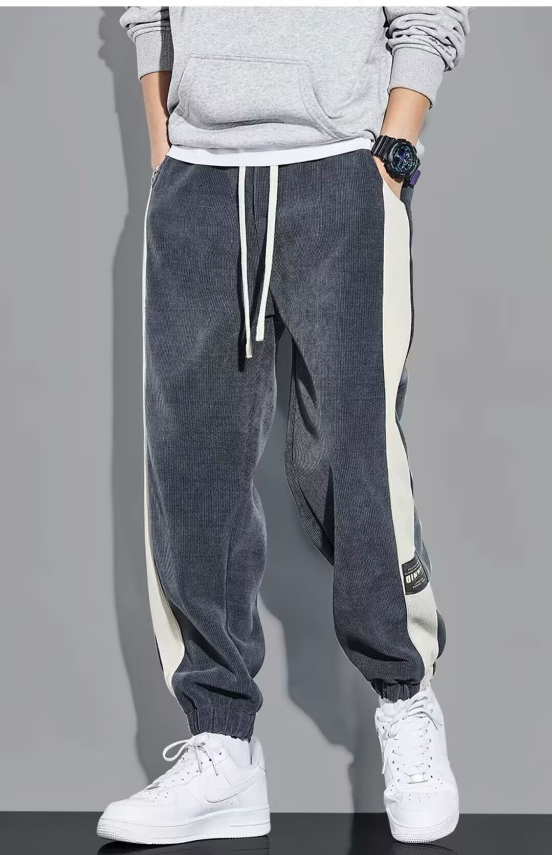 봄과 가을 스웨트 팬츠 남성용 유행 브랜드는 느슨한 발목 묶인 스포츠 바지를 두껍게 만들었습니다. 한국 유행 회색 남성 캐주얼 바지 유행스토어 가기