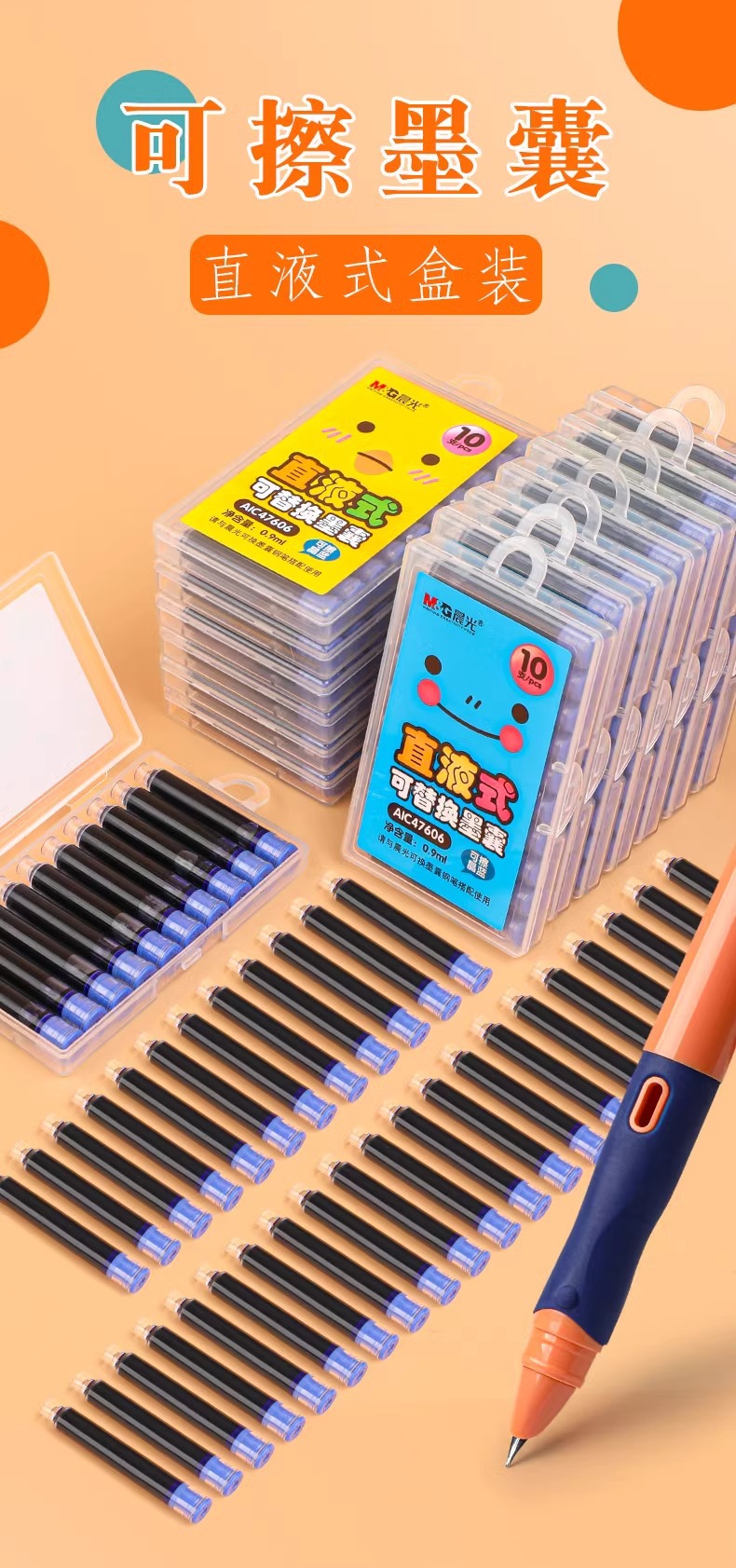Chenguang 펜 잉크 가방 직접 액체 교체 가능한 잉크 가방 ALC47606 지울 수 0.9ml 3.4mm 직경스토어 가기