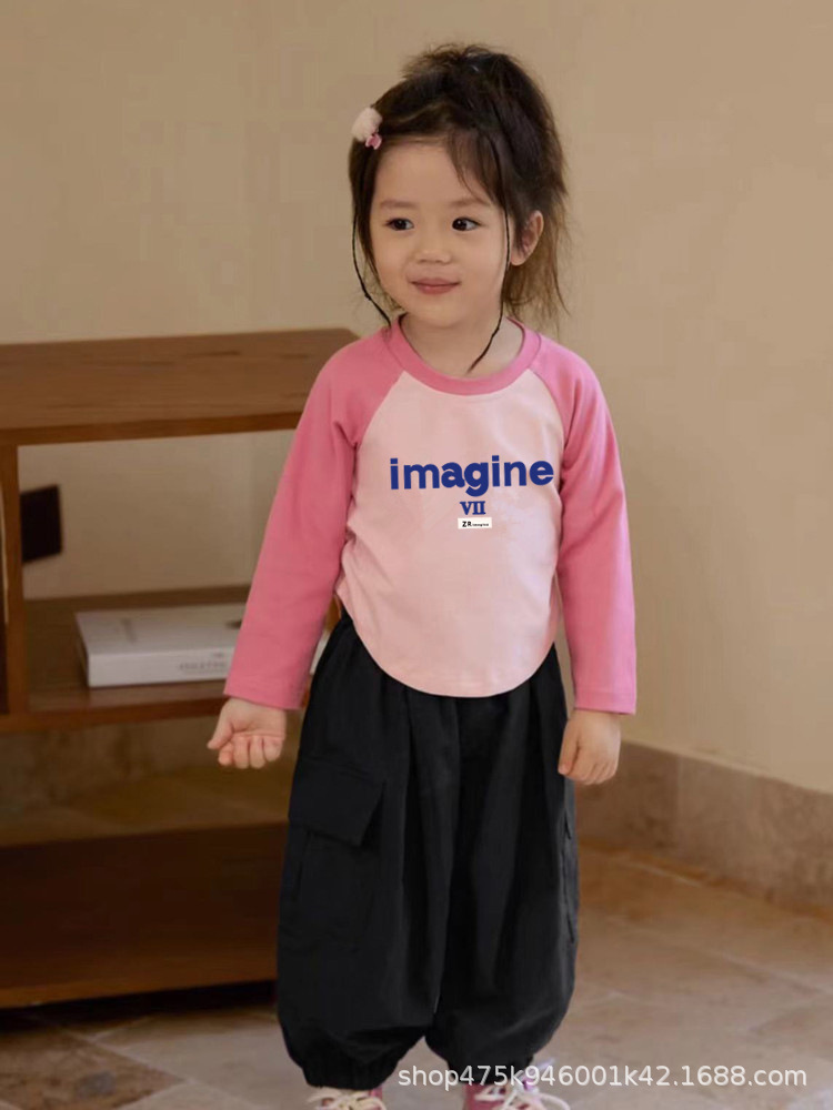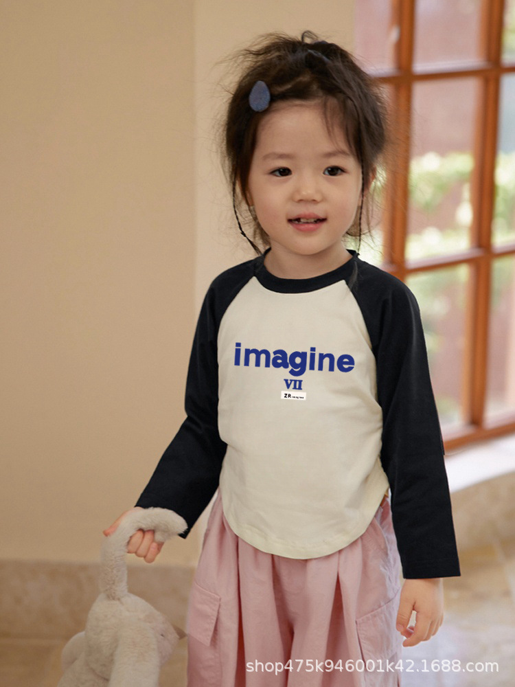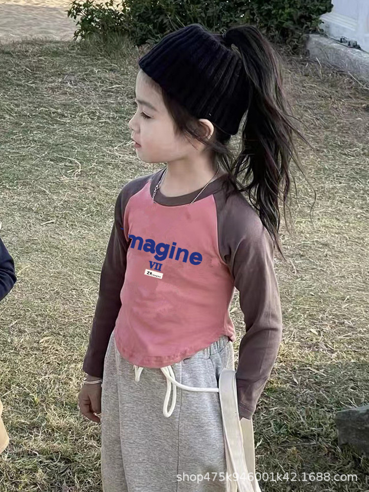 유행 아동용 코튼 쇼트탑 얇은 타이트한 봄과 가을 바지 셔츠 트렌디 한 도매 소녀 긴팔 티셔츠스토어 가기