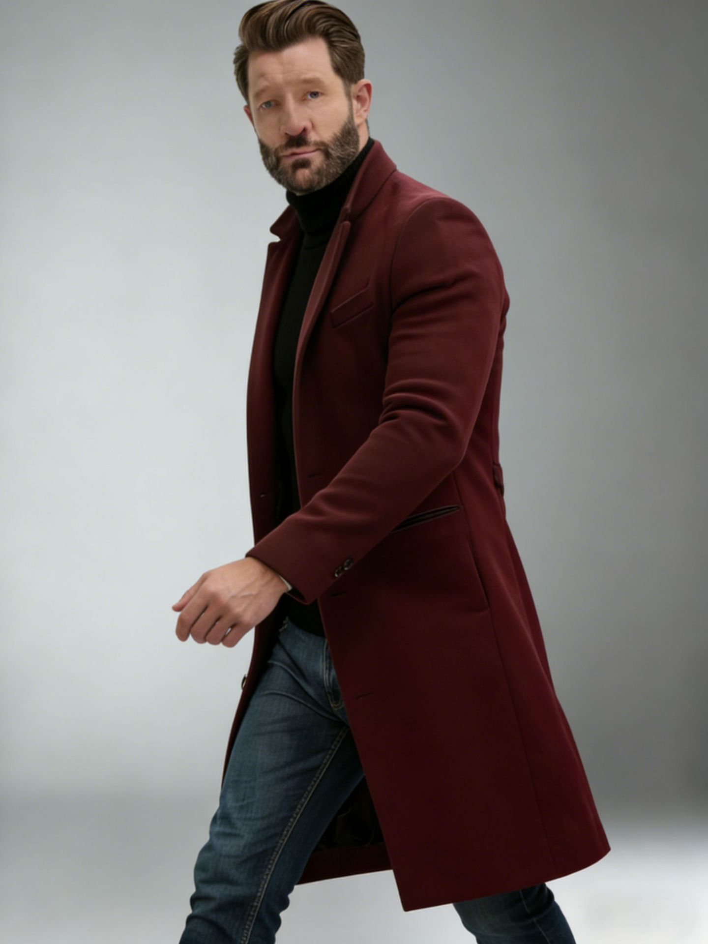 2024 유럽 및 미국 크로스보더 모직 코트 남성용 중간 길이 슬림핏 정장 칼라 윈드브레이커 겨울 출퇴근용