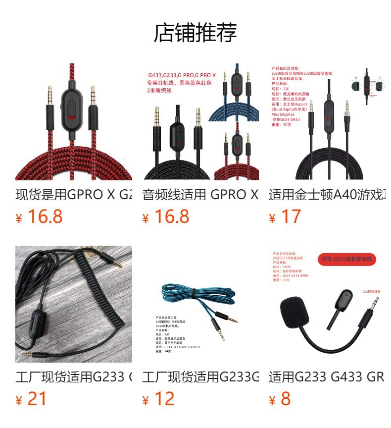 Logitech G433 이어폰 케이블 교체 링크 오디오 케이블 G233 GPRO X 수리 게임 케이블에 적용 가능스토어 가기