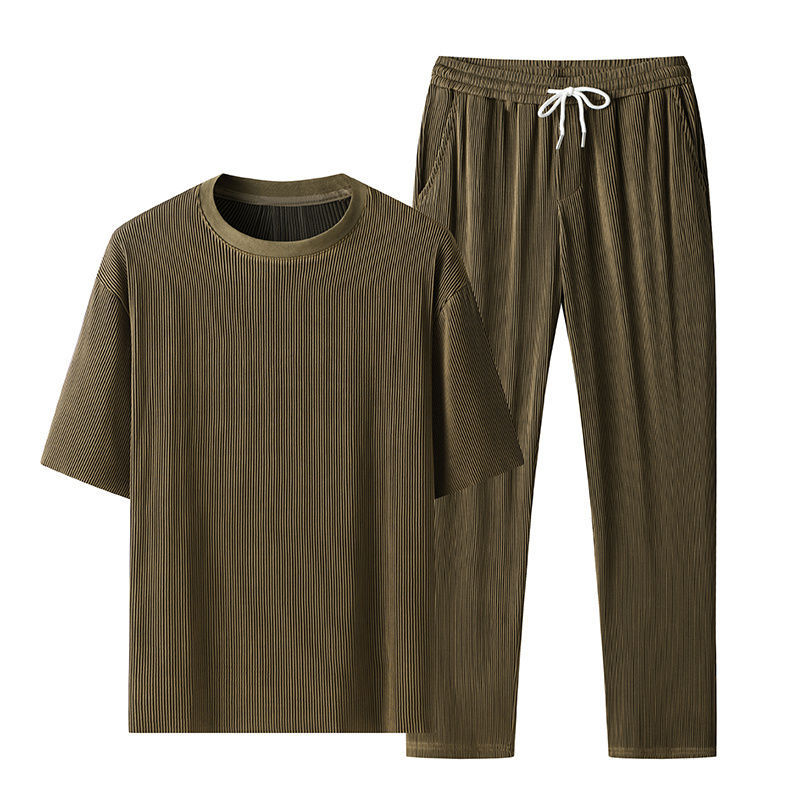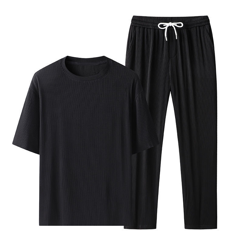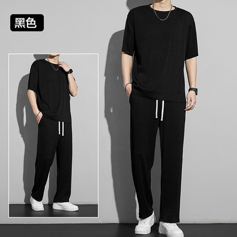아이스 실크 스포츠 세트 남자 여름 얇은 반팔 티셔츠 빠른 건조 캐주얼 긴 바지 반팔 옷 세트 착용